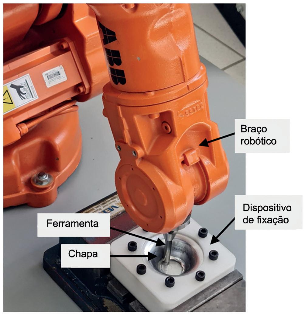 Experimentos de estampagem incremental em chapas de alumínio AA1200-H14 são abordados em um artigo técnico que começa na página 14. O estudo tem como objetivo determinar a Reta Limite de Conformação (RLC) para o processo de estampagem incremental pela conformação de peças com diferentes estados de deformação, metodologia que envolveu o uso de um braço robótico ABB IRB 140.