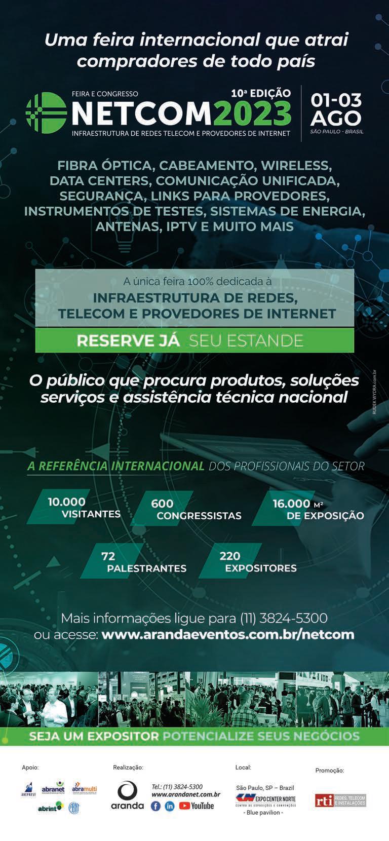 FIEE –A FIEE-FeiraInternacionaldaIndústriaElétrica,Eletrônica,Energia,AutomaçãoeConectividade,organizadapela ReedExhibitions,estámarcadapara18a21 dejulhode2023,noSãoPauloExpo,emSão Paulo,SP.Aexposiçãoéconsideradaumdos principaiseventosdesoluçõesemautomação,conectividade,equipamentoselétricos eeletrônicosdealtatecnologiaparainstalaçõesindustriais.Contacompresençade diversossegmentosentreosvisitantes:GTD deenergia,óleoegás,alimentos&bebidas, agronegócio,automotivo,transporte&logística,papelecelulose,químicaefarmacêutica, siderurgiaemetalurgia,mineração,cidades inteligentes,prefeituraseórgãospúblicos. Maisinformaçõessobreoeventopodemser obtidasno site www. ee.com.br