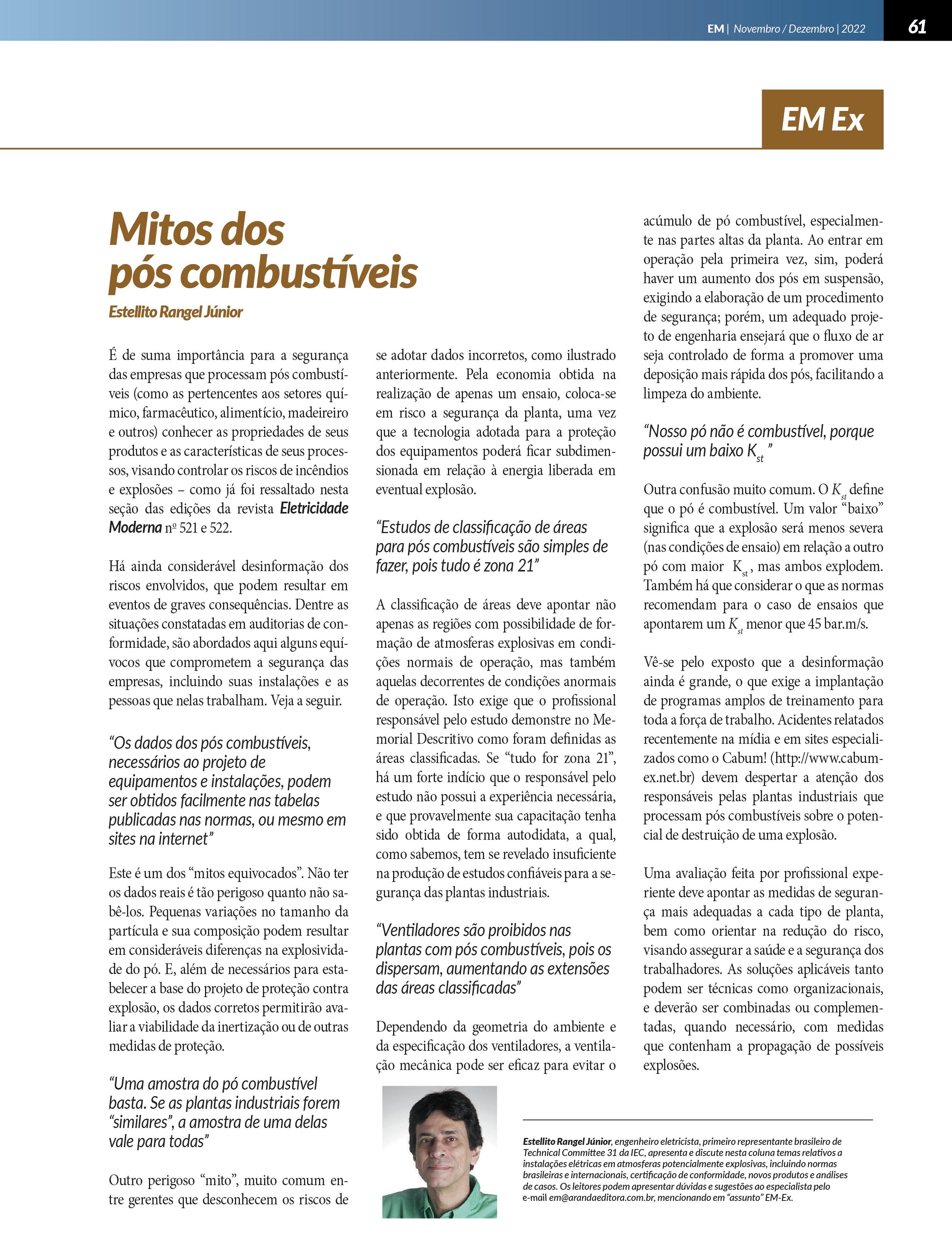 áreastécnicasparaengenheiros,eletricistas, técnicos,operadoreseestudantesdaáreade tecnologia.Oscursos–comduraçãomédia dedoisdias–podemserrealizadosnoformato online (comaulasaovivo),presencial (noCentrodeDistribuiçãoInteligenteeInnovationHubdeCajamar-SP)ounaslocaçõesdosclientes.Sãooferecidoscursossobre controladoreslógicos,interfacesgrá cas,sistemasdesupervisão,relésdeproteção,equipamentosdemédiaebaixatensão,sistemas deenergiaininterruptaemonitoramentoe ar-condicionadodeprecisão.Maisinformaçõessobreostreinamentosestãodisponíveis em https://loja.se.com/so ware-e-servicos Proteção –ATermotécnicaPara-raiosrealizadiversoscursosvoltadosapro ssionais daárea.De12a15dedezembro,aempresa vaiministrarotreinamento Aterramentode sistemaselétricos,queabordarásistemasde aterramentoeminstalaçõesdebaixaemédia tensão,proteçãocontradescargasatmosféricasecompatibilidadeeletromagnética.Informações: www.tel.com.br. Atmosferasexplosivas –ASchmersalofereceotreinamentoonline ExpertsSchmersal-Conhecimentosbásicosematmosferas explosivas,quetemoobjetivodedifundiros conceitossobreatmosferaspotencialmente explosivascomapresençadegasesin amáveisepoeirascombustíveis.Otreinamentoé ministradoporRicardoZanata,engenheiro especialistadeprodutosExdaSchmersal.A iniciativaédestinadaaospro ssionaisdenível pro ssionalizante,técnicoesuperior,como engenharia,equipesdeinstalações,manutenção,projetoesegurançanotrabalho,além deoutrosenvolvidosnasegurançadasinstalaçõeselétricasemáreascompotencialrisco deexplosões.Comduraçãodetrêshoras,o treinamentoapresentaosfundamentossobre atmosferasexplosivas,ondeestãopresentes asáreasclassi cadas,regulamentaçãoenormasvigentes,de niçãodaszonas,passospara umainstalaçãosegura,entreoutros.Osparticipantestêmàdisposiçãomateriaisdeapoio para download erecebemumcerti cadona conclusãodotreinamento.Asinscriçõesde-