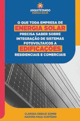 BIPV - O livro “O que toda empresa de energia solar precisa saber sobre integra ção de sistemas fotovoltaicos a edificações residenciais e comerciais” tem o objetivo de oferecer ferramentas para a integração de sistemas solares nas edificações, visando a va lorização dos imóveis além de alto desempenho energético. Escrita por Clarissa Debiazi Zomer e Isadora Pauli Custódio, arquitetas com foco em BIPV, a obra aborda temas como geração distribuída (vanta gens, cenário e melhor forma de gerar sua própria energia); possibilidades de gerar energia nas edificações (maneiras de integrar os sistemas foto-