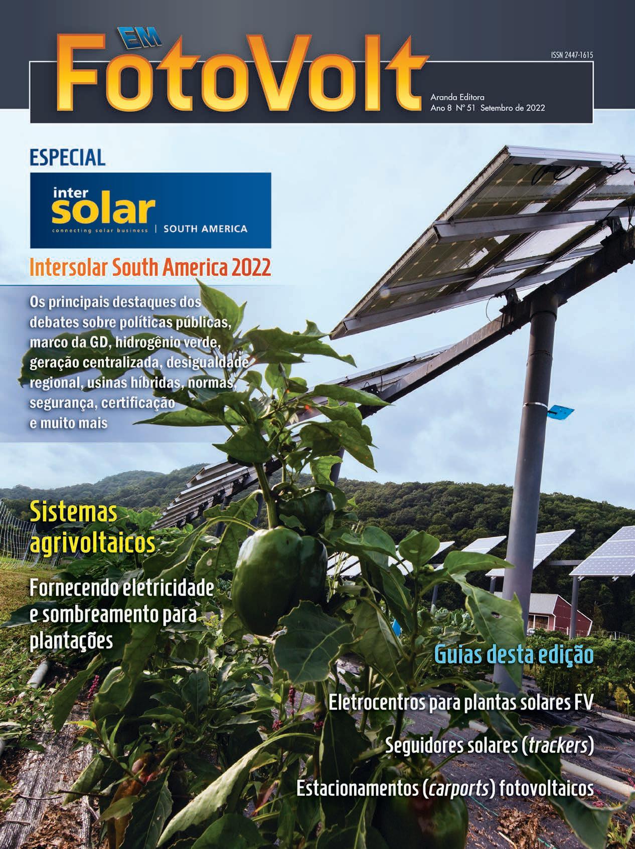 Intersolar – Esta edição traz as duas primeiras reportagens realizadas por FotoVolt relatando o que de mais importante ocorreu no congresso Intersolar South America 2022 Ainda que destacando apenas os principais aspectos, as matérias resultaram bastante extensas, o que dá a medida do muito que se discutiu e se deu a conhecer no evento sobre o setor solar no Brasil e no continente latino-americano. Na nossa próxima edição, completaremos essa cobertura com mais informação sobre o congresso e um alentado relato das novidades apresentadas na grande feira Intersolar.