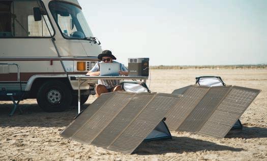 Um dos destaques da marca na feira foram os painéis solares portáteis e compactos de 110 a 400 W, que visam o fornecimento de energia autônoma. A empresa também fornece as linhas de geradores alimentados por bateria River e Delta, com capacidade de 720 W até 4500 W. Os equipamentos EcoflowDelta são compatíveis com uma ampla gama de dispositivos, oferecendo, de acordo com a empresa, autonomia para uma diversa gama de aplicações, como nos segmentos agropecuário, hoteleiro, industrial, manutenção de estradas, motorhome, food trucks, camping, pesca, turismo, TV e cinema, entre outros que demandam energia em locais remotos e soluções off-grid. A linha Ecoflow Delta pode alimentar até 11 aparelhos simultaneamente, com saídas CA para geladeira, TV, iluminação, fritadeira, liquidificador, máquina de café; saídas 60 W USB C para laptops, Nintendo, ou outros; saídas USB A para smartphones, alto-falantes e tablets, entre outros. Segundo a empresa, uma estação Delta “pode se encaixar em todas as portas necessárias para alimentar dis-