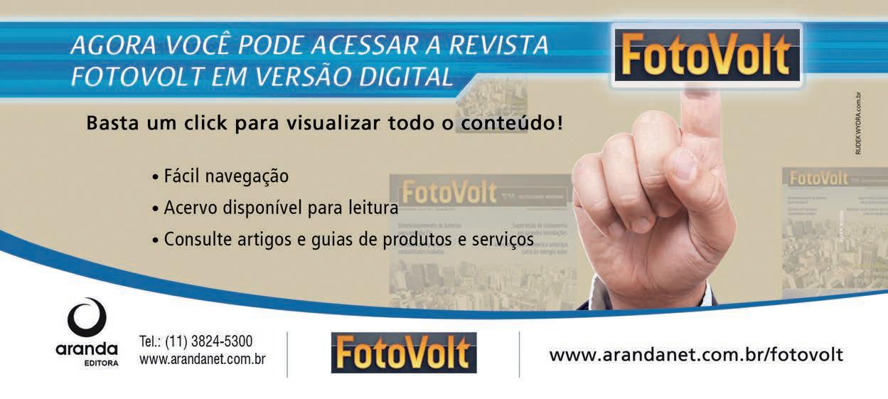 FotoVolt é uma edição especial da Revista Eletricidade Moderna, publicação mensal da Aranda Editora Técnica e Cultural Ltda.