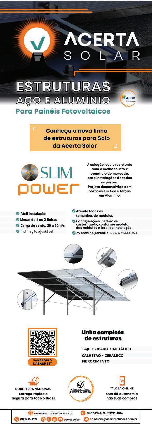 Absolar Acerta Estruturas Aldrava Solar Bel Energy Boltinox Brassunny Chint Clamper Domínio Solar Dutoplast Ecoflow Embrastec Gazquez Growatt Hellermanntyton Helte IBRAP Inox-Par Instituto HF Isoeste Metálica JA Solar Jolywood Ludufix Marvitec Max-Del Megatron MI Omega MO Energy Novemp NTC Somar Perfil Master Polienge Polyexcel Reicon Ribeiro Solar Romagnole Romiotto SAJ Serrana Solar Solis SSM Metálicas Studio Solar SP Trafo Trael Valmont W/Nunes Walsywa WEG Wireflex ............................................................. 71 51 65 39 13 4ª capa 43 23 17 21 19 44 16 ..................................................... 2ª capa 40 68 3ª capa ............................................................ 11 80 47 63 41 69 22 15 32 67 62 33 31 ...................................................... 45 50 35 46 ..................................................... 34 75 14 59 29 4 e 5 61 24 e 25 64 30 57 20 73 .......................................................... 37 e 49 7