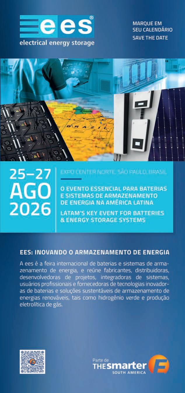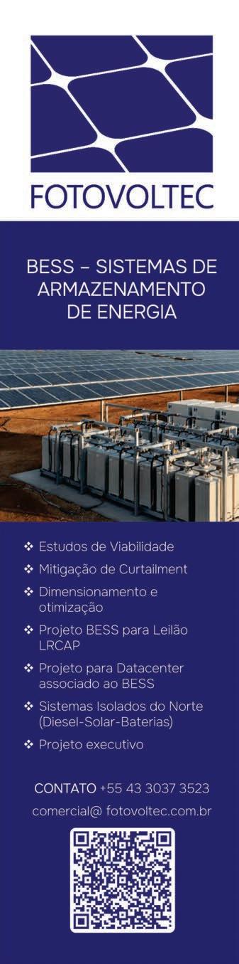 um dos pilares centrais da matriz elétrica global. Na avaliação da Absolar - Associação Brasileira de Energia Solar Fotovoltaica, esse cenário demonstra a necessidade cada vez maior de reforçar a segurança regulatória e modernizar a infraestrutura elétrica no Brasil, sobretudo para ampliar a oferta de fontes limpas, renováveis, mais competitivas e de rápida implantação. Segundo a entidade, a expectativa de crescimento médio anual é de 3,3% no consumo de eletricidade no Brasil até 2035, projetado no Plano Decenal de Expansão de Energia, da EPE - Empresa de Pesquisa Energética. O relatório também destaca a expansão robusta do armazenamento em baterias como elementochave de flexibilidade e integração de fontes renováveis nas matrizes elétricas. Atualmente, há mais de 600 GW de projetos de armazenamento em baterias aguardando conexão às redes elétricas em todo o mundo.