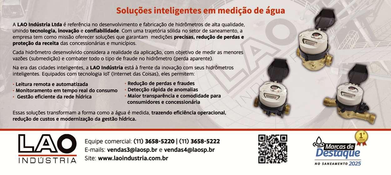 O hidrômetro volumétrico Laquav, da Leenia, foi desenvolvido com tecnolog ia de alta sensibilidade, garantindo precisão superior em baixas vazões Voltado para medições residenciais e con-
