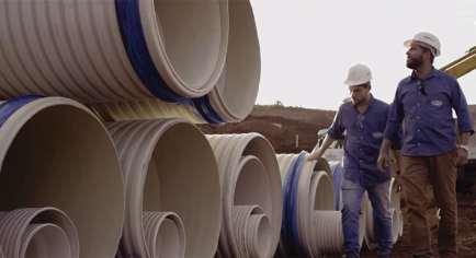 Os tubos de g randes diâmetros desempenham papel essencial nos sistemas de saneamento, permitindo o transpor te eficiente de elevados volumes de água e efluentes em redes urbanas e intermunicipais