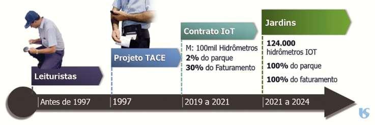 O projeto de eficiência hídrica com IoT – Internet das Coisas e IA – Inteligência Ar tificial implantado na Sabesp prevê a instalação de hidrômetros com dispositivos de transmissão de dados em tempo real, permitindo a coleta contínua e atualizada do consumo de água, além de reduzir os custos operacionais e promover a sustentabilidade ambiental