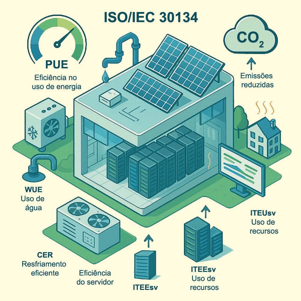Com a crescente demanda por serviços digitais, surge a necessidade crítica de medir e otimizar a eficiência operacional dessas instalações, não apenas por questões econômicas, mas também por responsabilidade ambiental. O artigo apresenta os oito indicadores de desempenho especificados na ISO/IEC 30134 e detalha seus conceitos, métodos de cálculo, valores de referência e estratégias de otimização.