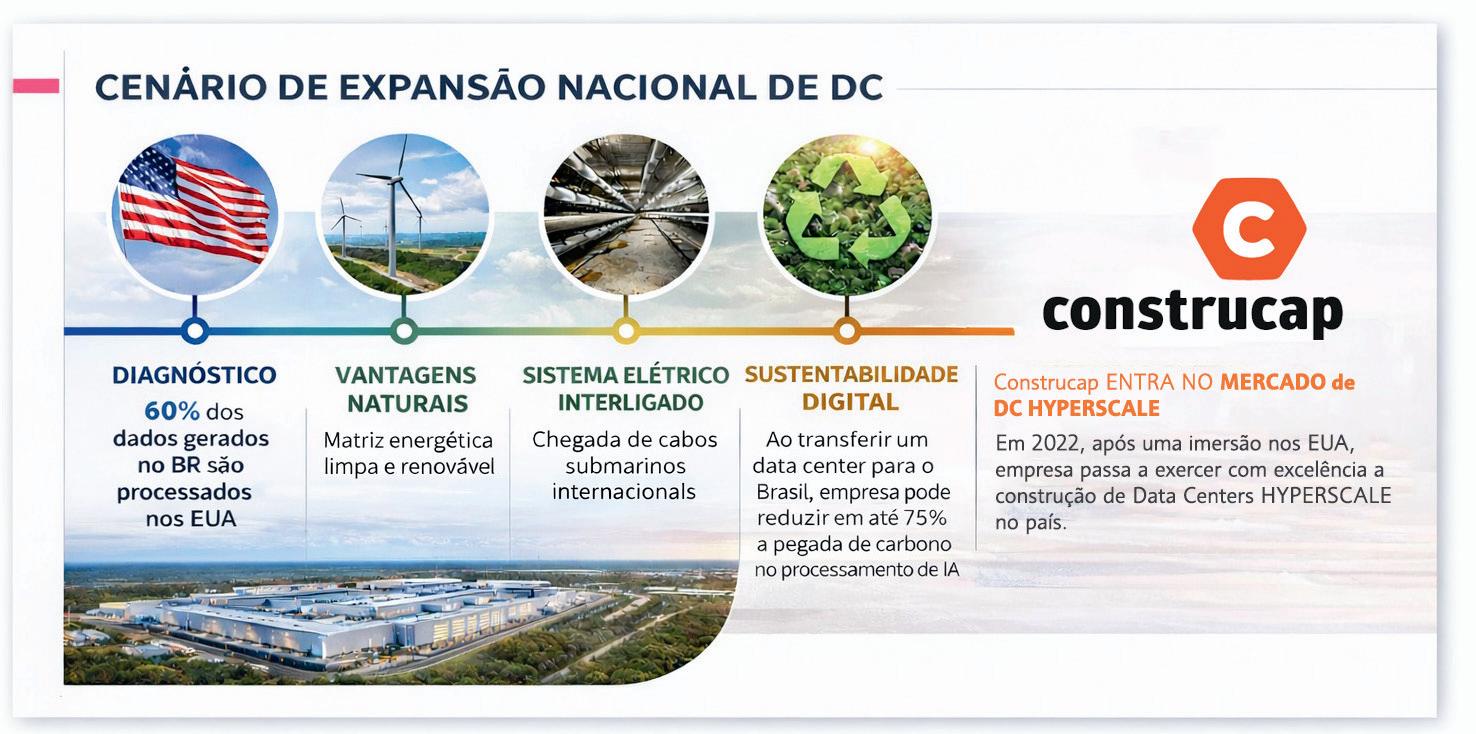 A Construcap tem focado toda sua expertise e jornada histórica de grandes realizações para levar aos data centers a introdução de soluções mais avançadas de engenharia, com atendimento nos prazos de pré-construção e construção.