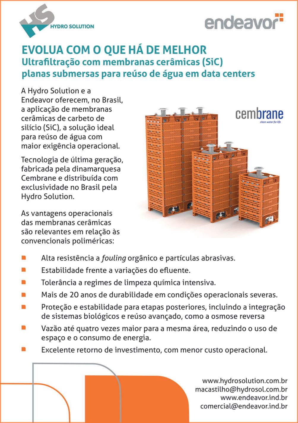 A tecnologia é fornecida pela dinamarquesa Cembrane, maior produtora mundial de membranas SiC, e distribuída com exclusividade pela Hydro Solution no país. As soluções já estão presentes em mais de 500 instalações em 65 países.