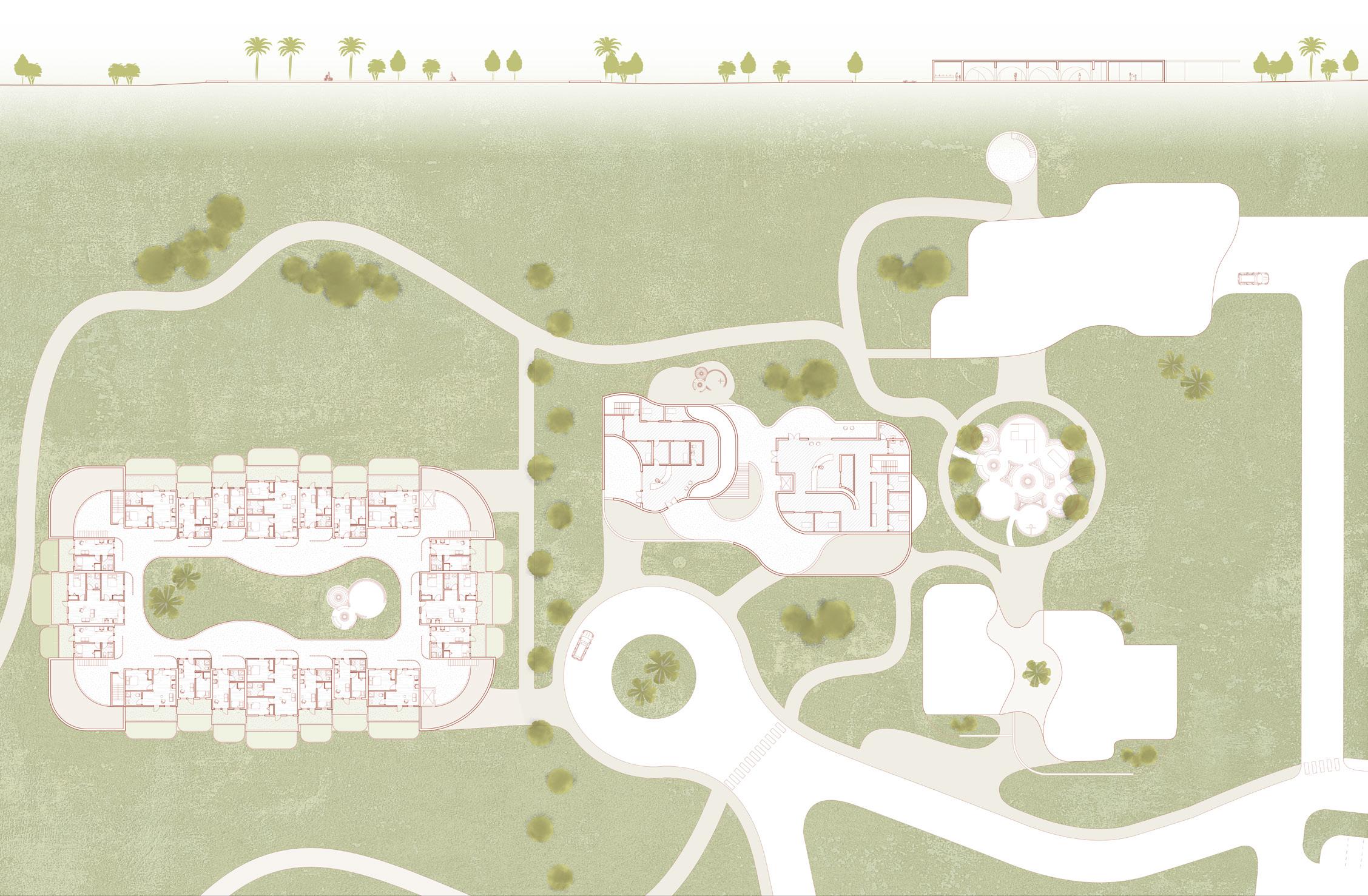 3 2 4 5 6 7 8 9 10 11 12 36 10. OBGYN 11. Mental Health Clinic 12. Housing Level 2 Level 1 | Plans + Section through Housing & Clinic Level 2 | Plans + Section through Community Center 1 1. Welcome Center 2. Career Services 3. Legal Aid 4. Volunteer Space 5. Community Center 6. Cafeteria 7. General Care 8. Pediatrics 9. Housing