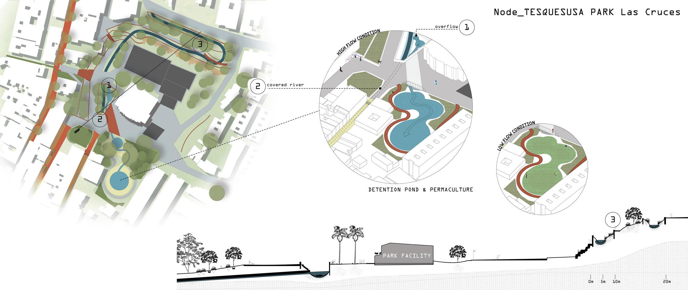 Proximity, or mobility, prioritizes pedestrians and reroutes vehicular traffic. Landscape aims to reconnect the population with the underground river, and each intervention involves residents with agency over their community.