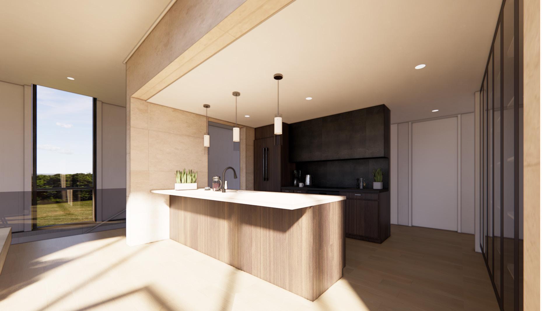 Nestled in the hills just south of Lake Travis, Barrie House is a welcoming contemporary home settled on a ridge overlooking the Colorado River. A cantilevered deck on the second floor provides the owners and guests with a beutiful view while enjoying the lap pool. With a footprint spanning 3,300 square-ft, the house includes three spacious bedrooms, three bathrooms and a powder room for guests. Additionally, the house offers a dedicated home office space, ideal for those seeking a peaceful work-from-home environment. The client envisioned a modern dwelling infused with rustic Texan charm. This vision finds its expression in the extensive use of limestone, both as a cladding for the exterior facade and as an accentuating element within the interior spaces. Contrasting beautifully with the limestone backdrop, the kitchen features custom walnut cabinetry and a rolled steel backsplash. The aesthetic flows from the kitchen into the dining and living areas, where wooden furniture pieces and carefully curated artistic accents add to the rustic, yet modern, ambiance. Throughout Barrie House, the designers have embraced the use of natural materials to infuse life and comfort into every corner.