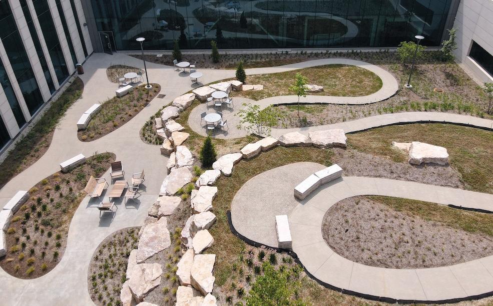 Bottom right: The healing garden at the new IU Health Bloomington campus.