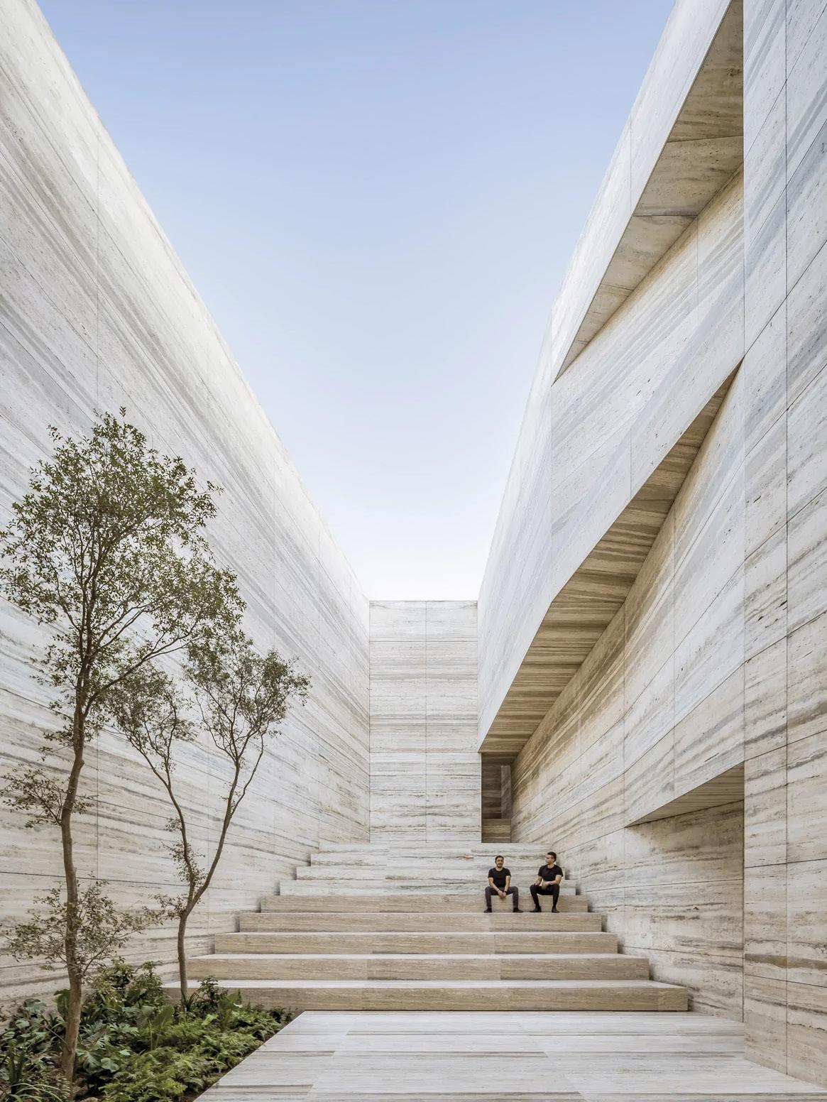 The textured, rugged surfaces align with his reverence for natural materials, while the gleaming, smooth finishes create an optical illusion of weightlessness and boundlessness, elevating the materials to the forefront of the design narrative.