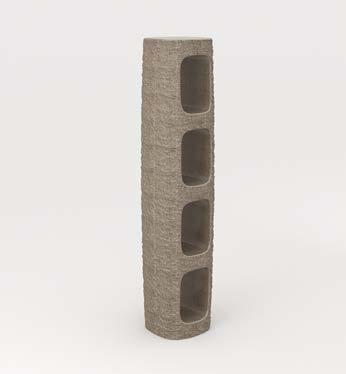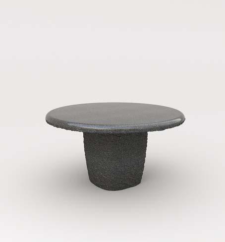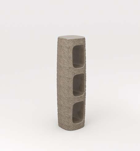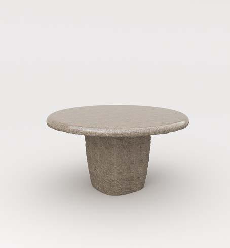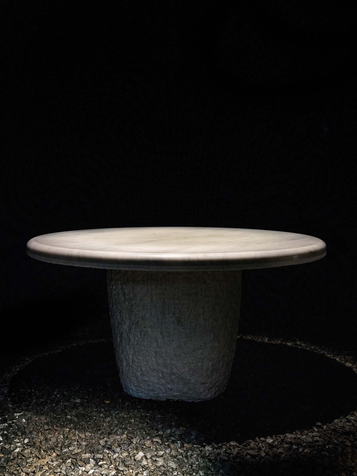 The Dining Table Round stands as an evidence of extraordinary elegance and durability, achieved through the combination of polished and rough surfaces. Opposite Page: Library Modules D, B, and A can be arranged as a cohesive set or stand alone as individual sculptural pieces.