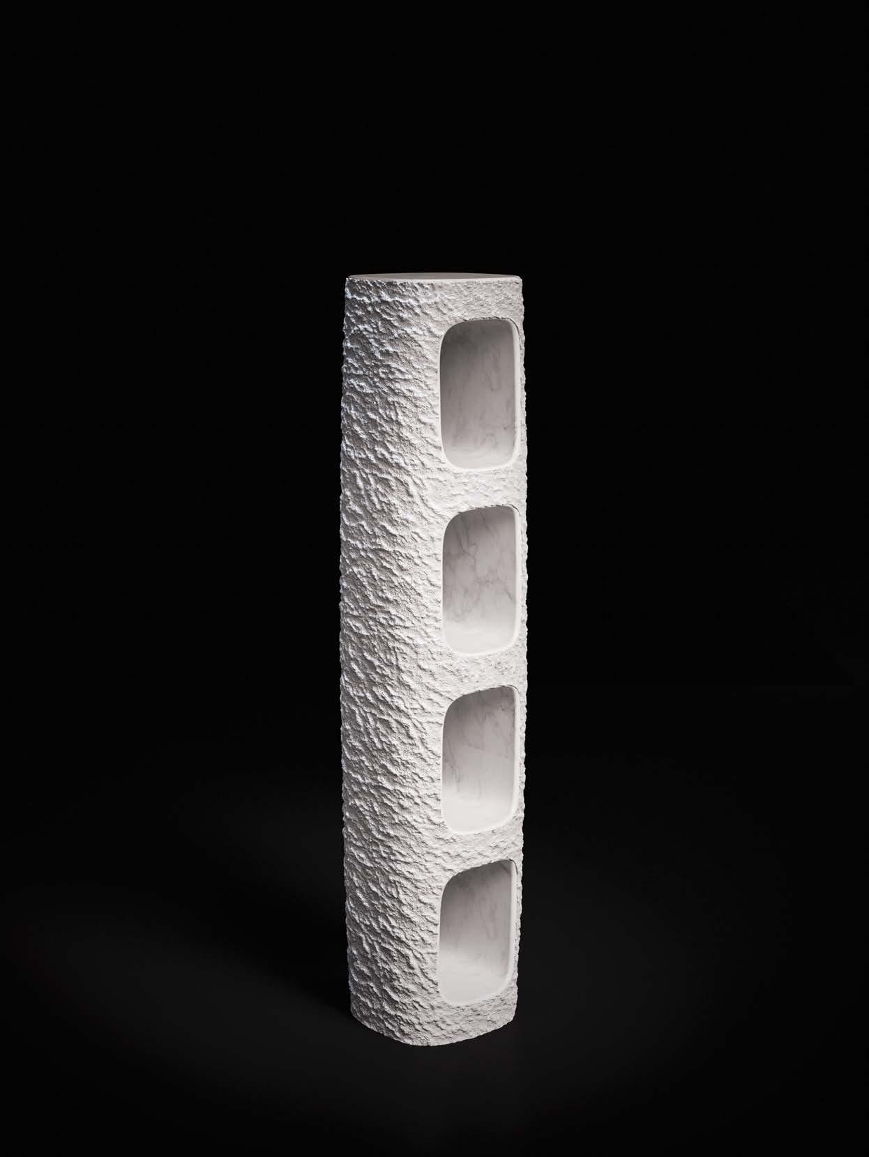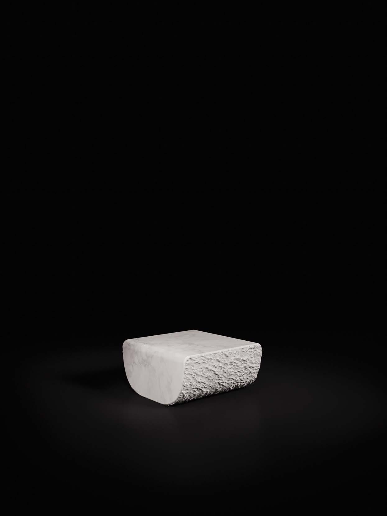 Today, artists like Jan Fabre and Maurizio Cattelan are still drawn here, lured by the unparalleled quality of the marble. It is from this very site that the blocks for GRAVITAS were secured. This one-of-a-kind stone provides a white canvas embellished with delicate veining, granting an aura of sophistication and complexity to each piece.