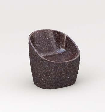 The intense burgundy Porfido Chair stands as a testament to the exquisite beauty of natural materials. Opposite Page: The addition of Cafecina’s warm hues brings an unexpected aura to the Side Table B.