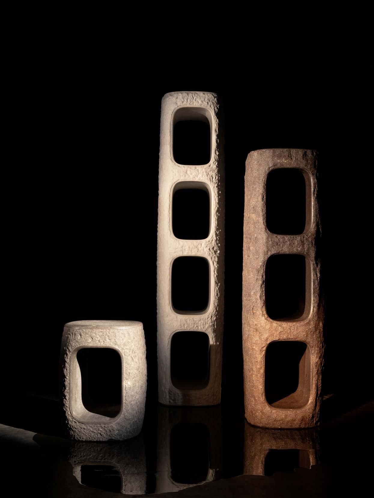 Collaborating with ARCA has been a truly enriching experience. Their deep understanding of my aesthetic and universe was evident in the selection of stones they offered, perfectly aligning with my vision. It was a pleasure to explore new stones with their expertise guiding the way. The collaboration unfolded seamlessly, marked by mutual respect and a fluid exchange of ideas. Their trust in granting me creative freedom for this project allowed me to delve into a deeply personal concept. Working alongside ARCA felt like having the best stone specialists by my side. Their comprehensive knowledge of every nuance of the materials proved invaluable in shaping this collection. I aimed for the pieces to exude a timeless quality, echoing the exquisite beauty of nature. The campaign, in turn, seeks to highlight the inherent allure of the stone, emphasizing the interplay between smooth and rough surfaces, polished and hammered finishes. These monumental creations, with their monolithic presence, evoke a profound sense of tranquility. The visuals of the collaboration serve as a complement of the outline of the pieces that convey a sense of serenity. This helps to my ultimate aspiration for this collection to resonate with people on an emotional level. Finally, knowing that this project allows me to translate my deep passion and fascination for natural materials is immensely gratifying.