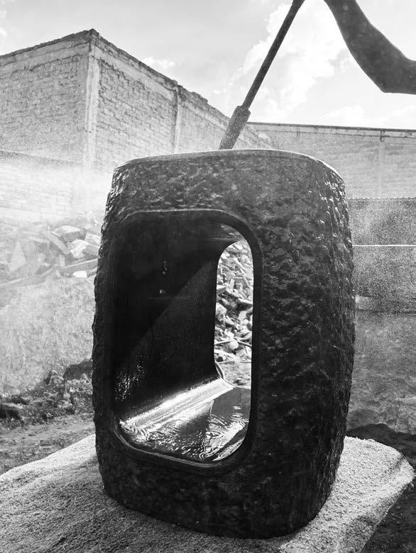 Hailing from the volcanic soils of Mexico, Recinto has a unique blend of strength and understated beauty. Born from swiftly solidifying magma, it features a distinctive black hue and porous texture. Its use dates back to the pre-Hispanic era, being found in important ceremonial pieces such as the Calendario Azteca, exhibited in the monumental National Museum of Anthropology, in Mexico City. Artisans extract large, functional pieces from quarries called “Saque de piedra”. That labor is often a family tradition, where knowledge is passed down through generations to craft marvelous designs. Prime quarries, like those near Popocatépetl volcano, yield exceptional crafting material, as seen in GRAVITAS. The resulting pieces, surprisingly smooth despite the rugged material, reflect years of tradition and a deep connection to Mexico’s natural landscape.