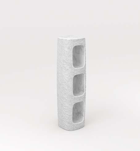 Vincent Van Duysen skillfuly integrates a unique selection of materials. Porfido stone and Carrara marble —from Italy—, harmonize contemporary aesthetics with the timeless appeal of natural stone. The Cafecina stone from Spain, and Recinto volcanic stone from Mexico were incorporated, further enriching the selection with their distinctive hues and properties that lend a captivating dimension to the design. The variations of textures in the pieces pay homage to the beauty of nature, ranging from rough tactility to smooth surfaces, creating a visual interplay of lightness and infinity. This dual treatment of the same material infuses the