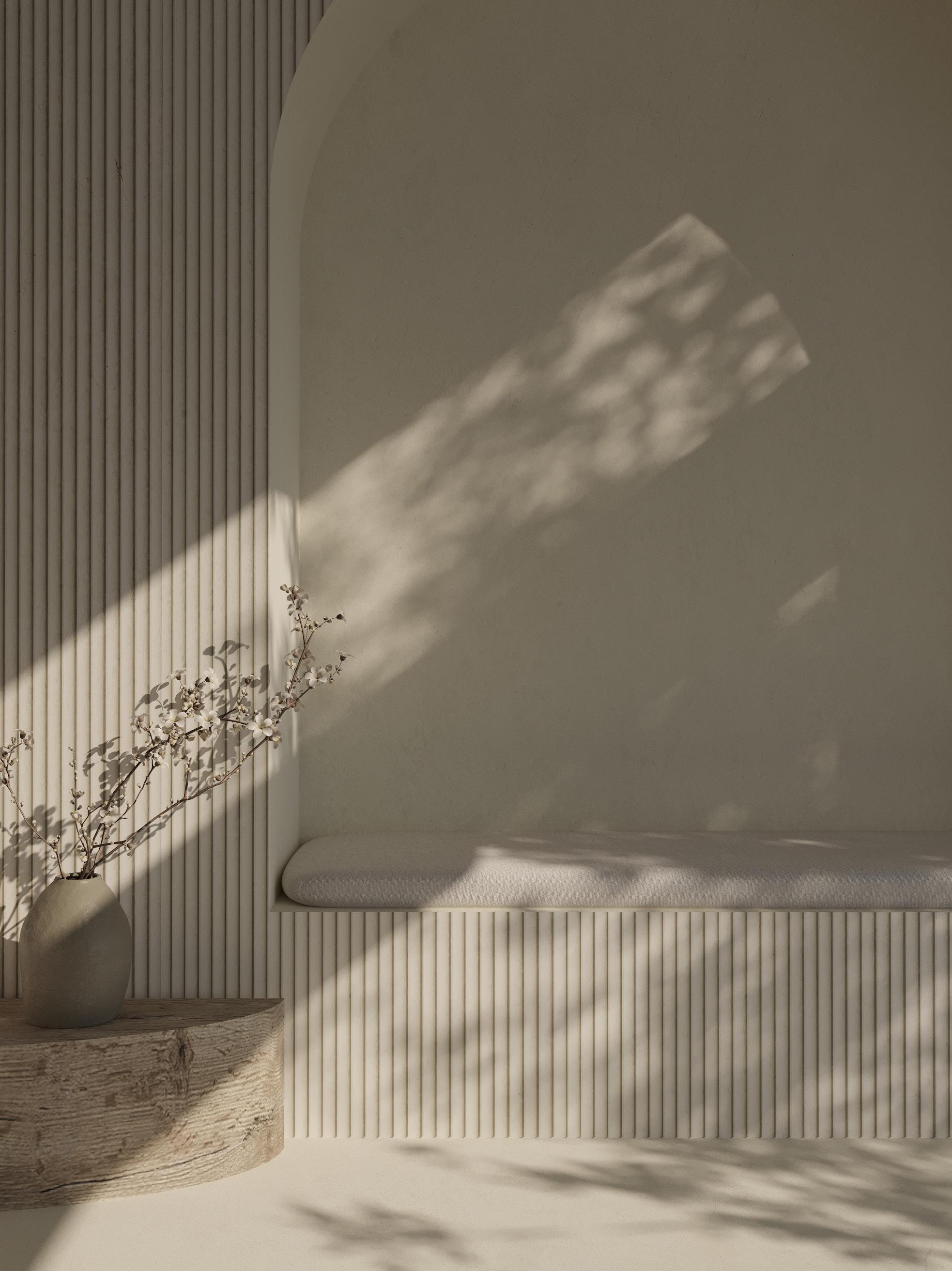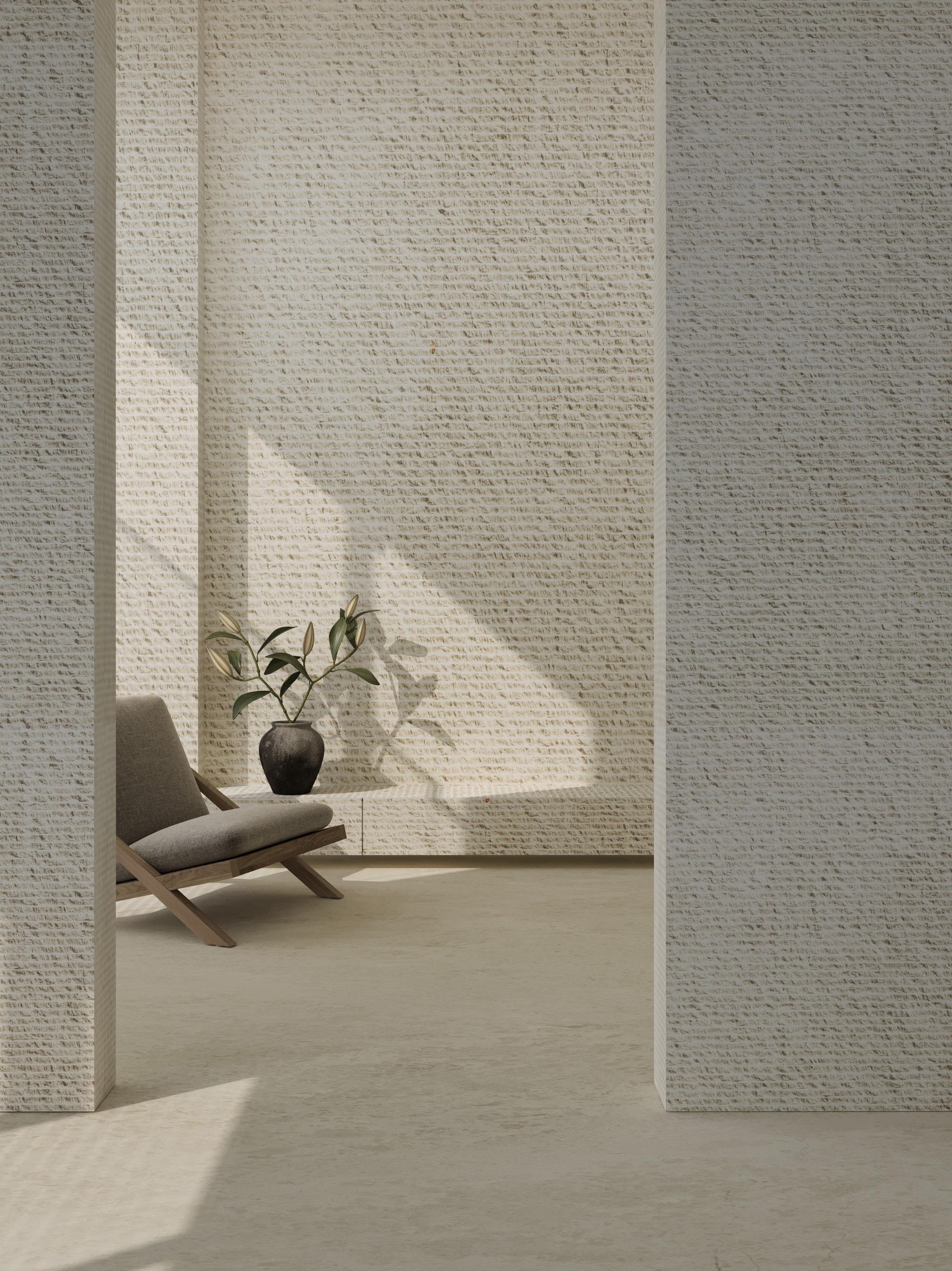A finish with deep, uniform grooves that offers a distinctive and bold tactile experience, creating a play of light and shadow ideal for modern and avant-garde designs.