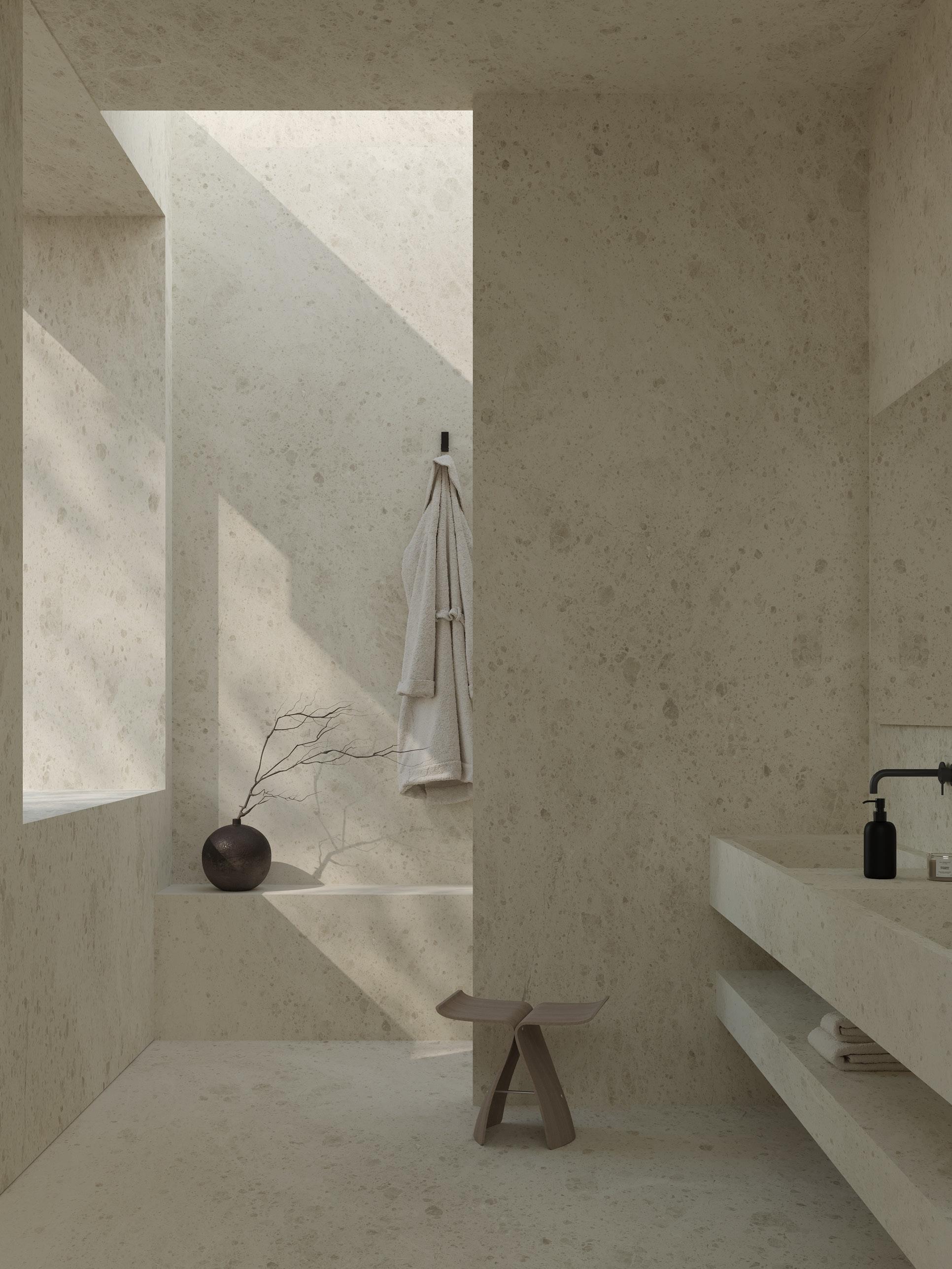 Delicately textured, this finish is achieved through a brushing process that enhances the richness and depth of the stone. The surface has a soft touch, preserving the material’s natural beauty and sophistication.