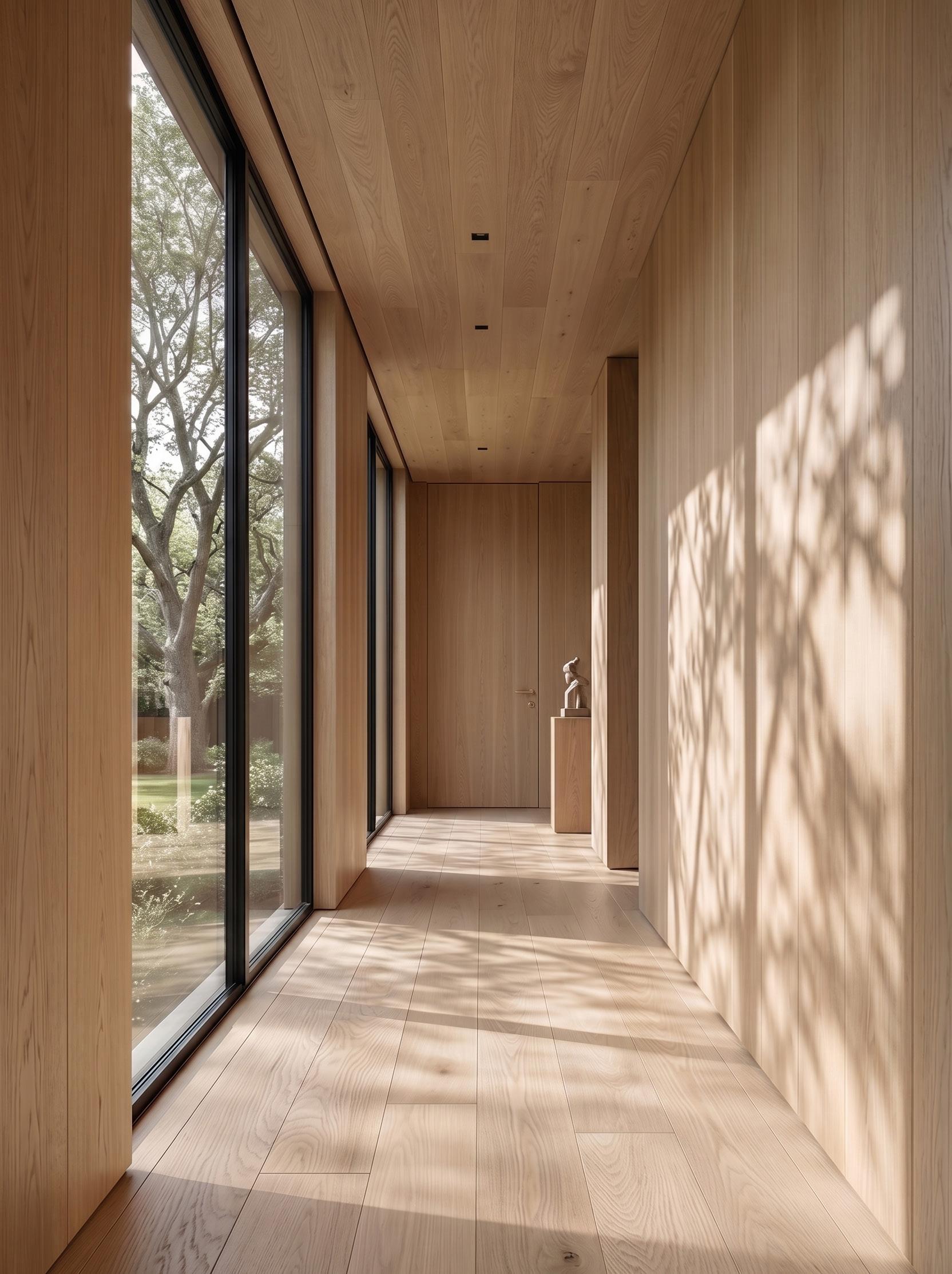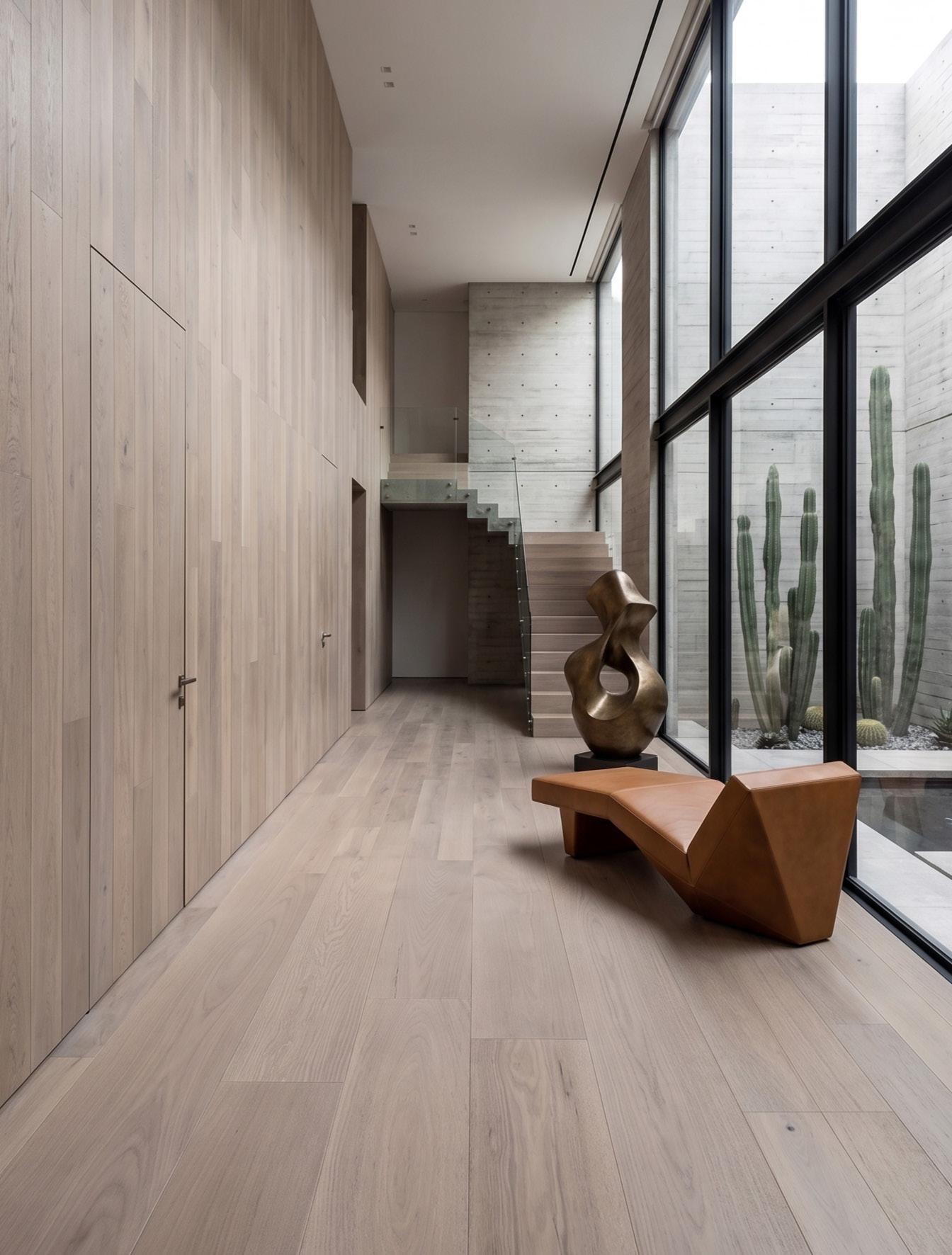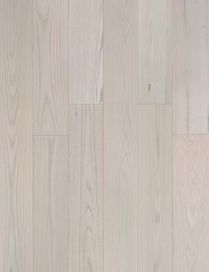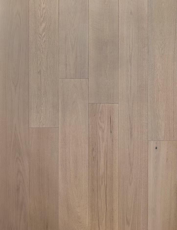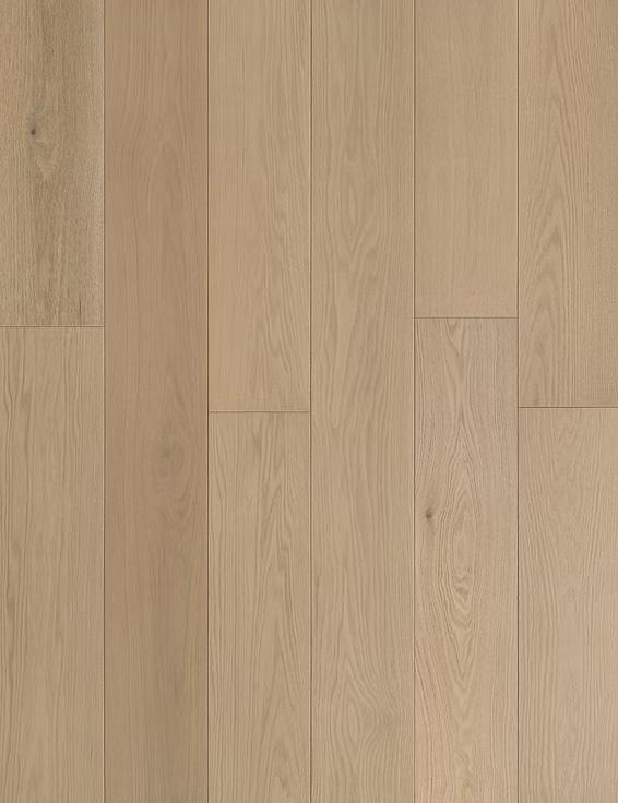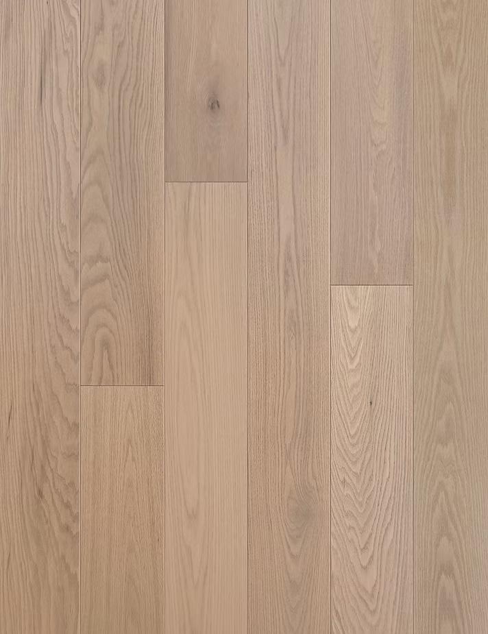 Crafted from American Red Oak — Prime, each plank is carefully selected to highlight the subtle elegance of the grain and the material’s natural clarity. A refined wire-brushed surface gently reveals the wood’s texture, while an ultra-matte finish softens reflections and enhances its organic character, allowing the floor to feel quietly integrated rather than visually imposed. The result is a surface that captures light with quiet restraint and depth, unfolding more like a landscape than a layer.