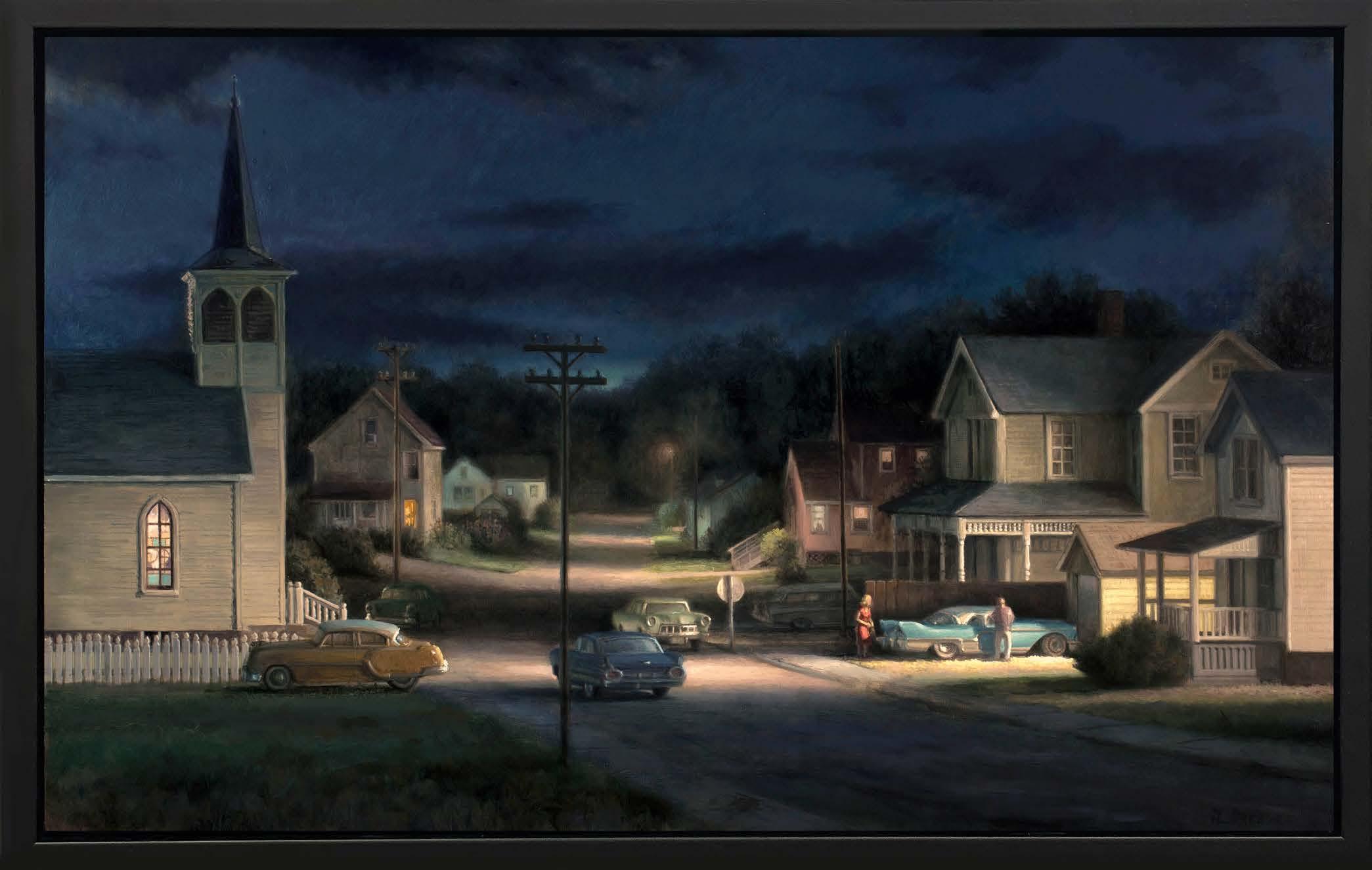The presentation pairs established figures with more recent additions to the gallery’s roster, highlighting a range of approaches within contemporary representational painting, from intimate interiors and psychological portraiture to expansive narrative scenes and atmospheric landscapes. While each artist maintains a distinct visual language, the works share a sustained commitment to observation, craftsmanship, and personal interpretation.