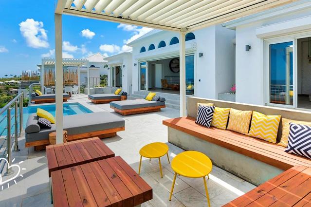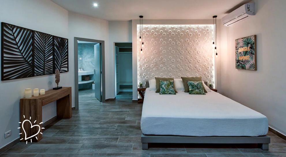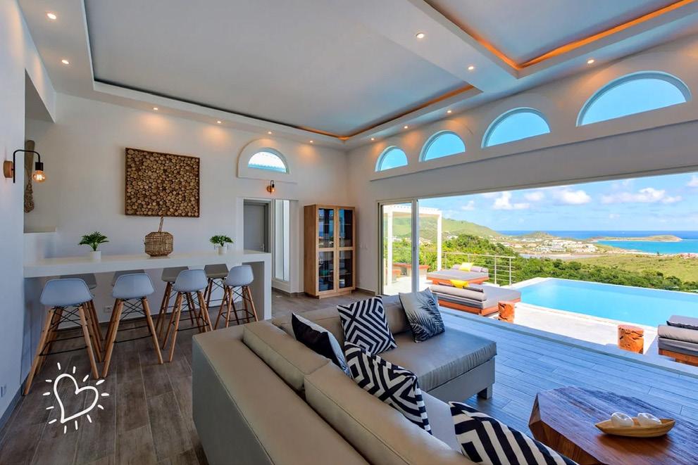 Soak up the sun and enjoy the gentle sea breeze both inside and outside the villa Take a dip in the infinity pool that overlooks the crystal-clear waters of Orient Bay . Experience the beauty of the Caribbean Sea with a half-day, 4-hour boat charter, including drinks, snacks and a friendly captain Explore the island’s nightlife, learn about the vibrant local culture, lounge on serene white sand beaches, or spend your time in the villa basking in the AC, working out in the gym or taking in the island air from the villa’s spacious deck . Luxury and leisure are calling your name .