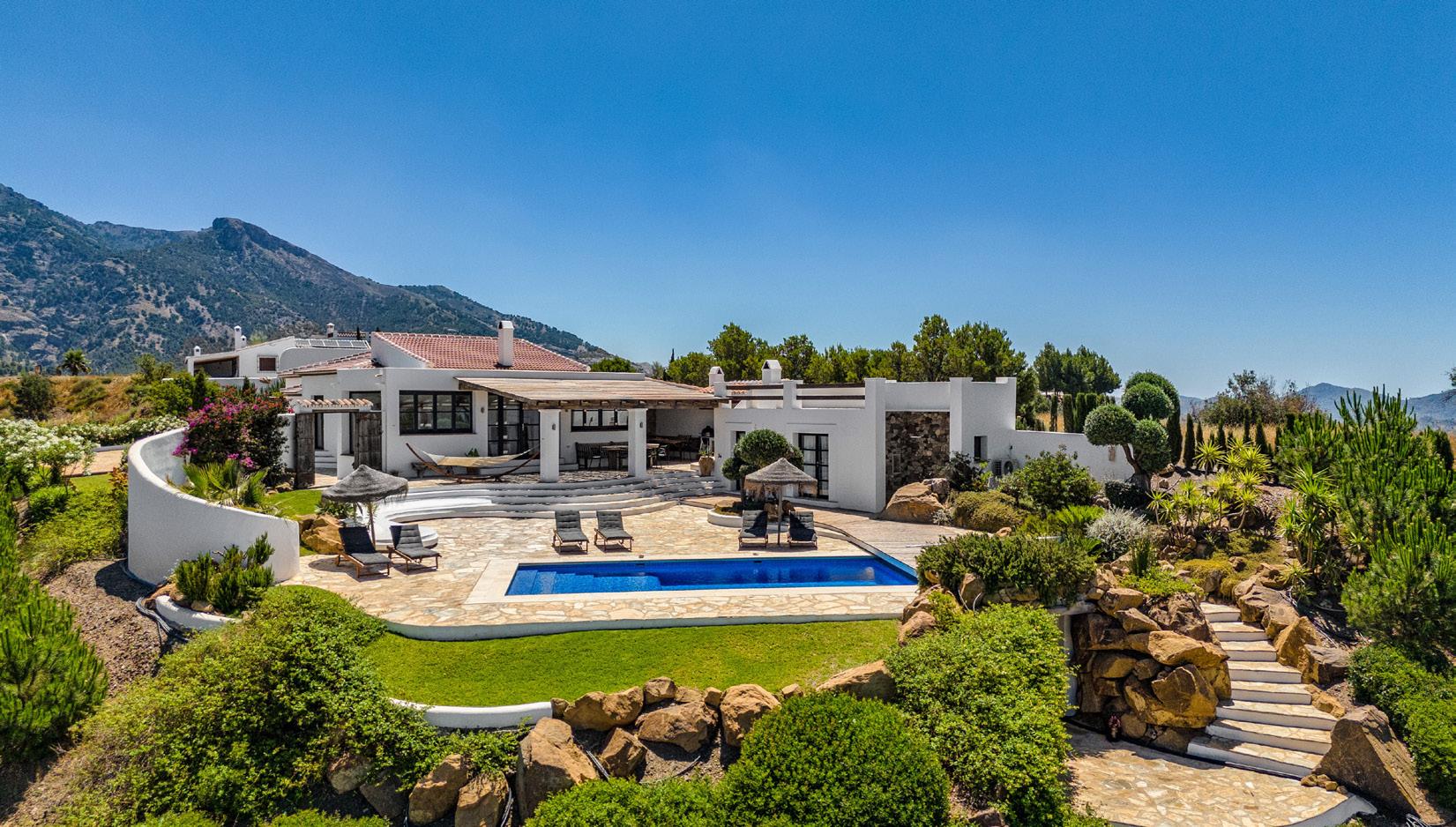 This stylish and unique 3-bedroom, 3-bathroom villa is a luxuriously charming property, built on the site of an old farmhouse, it pays homage to its rustic Andalusian heritage while simultaneously offering modern sophistication . The villa is dotted with art deco furniture and local artwork, all handpicked to create the ultimate space for you to rejuvenate . With spacious living areas, a private pool, secluded gardens and heart-stirring views over the valley and beyond, the villa promises unsurpassable comfort and relaxation Soak in the warm Andalusian sun, cool off in the shade of ancient eucalyptus and palm trees, or jump into the refreshing waters of the pool . Nestled on a hilltop, this is the perfect base for exploring the beauty that this region offers Here you are literally on top of the world, and marvel as the land seemingly falls away before you into the valley, and spills out to meet the Mediterranean Sea beyond .