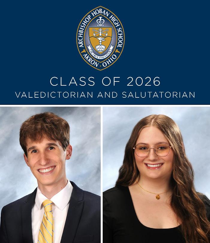 The 2026 school year’s Valedictorian and Salutatorian have officially been announced and Hoban could not be more excited to congratulate seniors Alexander Haran and Danielle Ferree. Obtaining these two highest spots in the class is no easy task and was only pulled off due to hard work and diligence on both students’ ends. Valedictorian Haran was able to achieve the highest cumulative grade point average after seven full semesters at Hoban, along with Salutatorian Ferree, who had the second highest average.