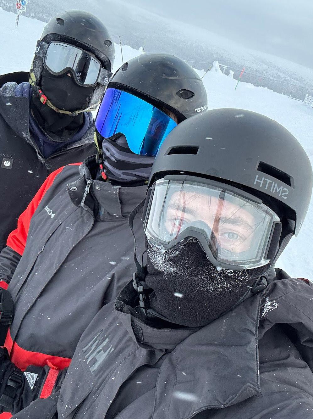 McDaniel, Radel and Fortunado take a picture at the top of one of the ski hills on their trip. They all enjoyed skiing and finding different routes to take either on the hills or through the trees.