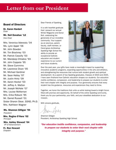 It is with heartfelt gratitude that I present our annual Winter Magazine and Donor Roll, celebrating the generosity of our incredible community. Your support as an alumnus, parent, faculty, staff member, or friend gives Archbishop Spalding High School the ability to provide an exceptional Catholic education and student experience to our current and future students