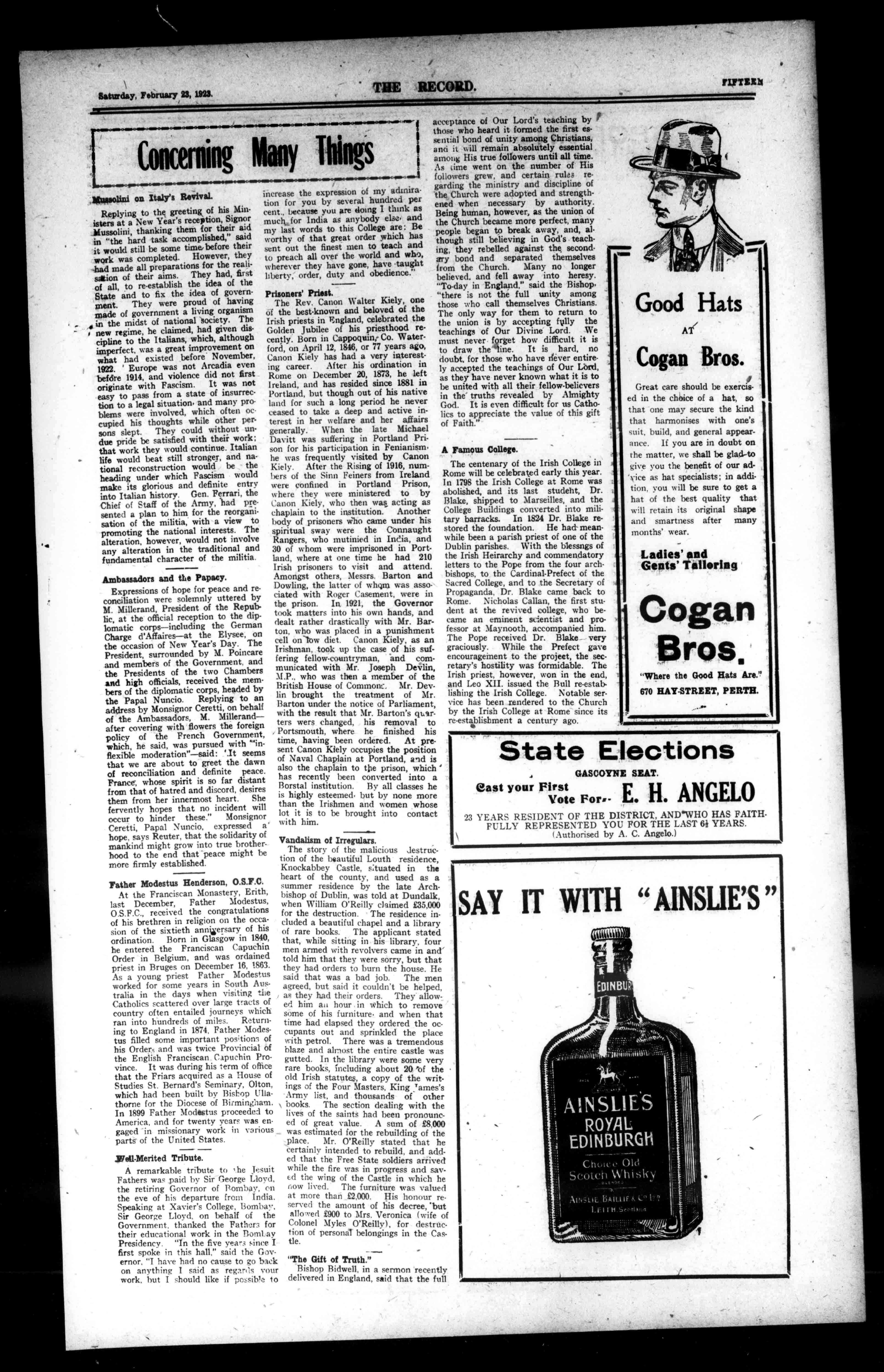 Saturday,February23,1923. THERECORD. NINETEIN Ip