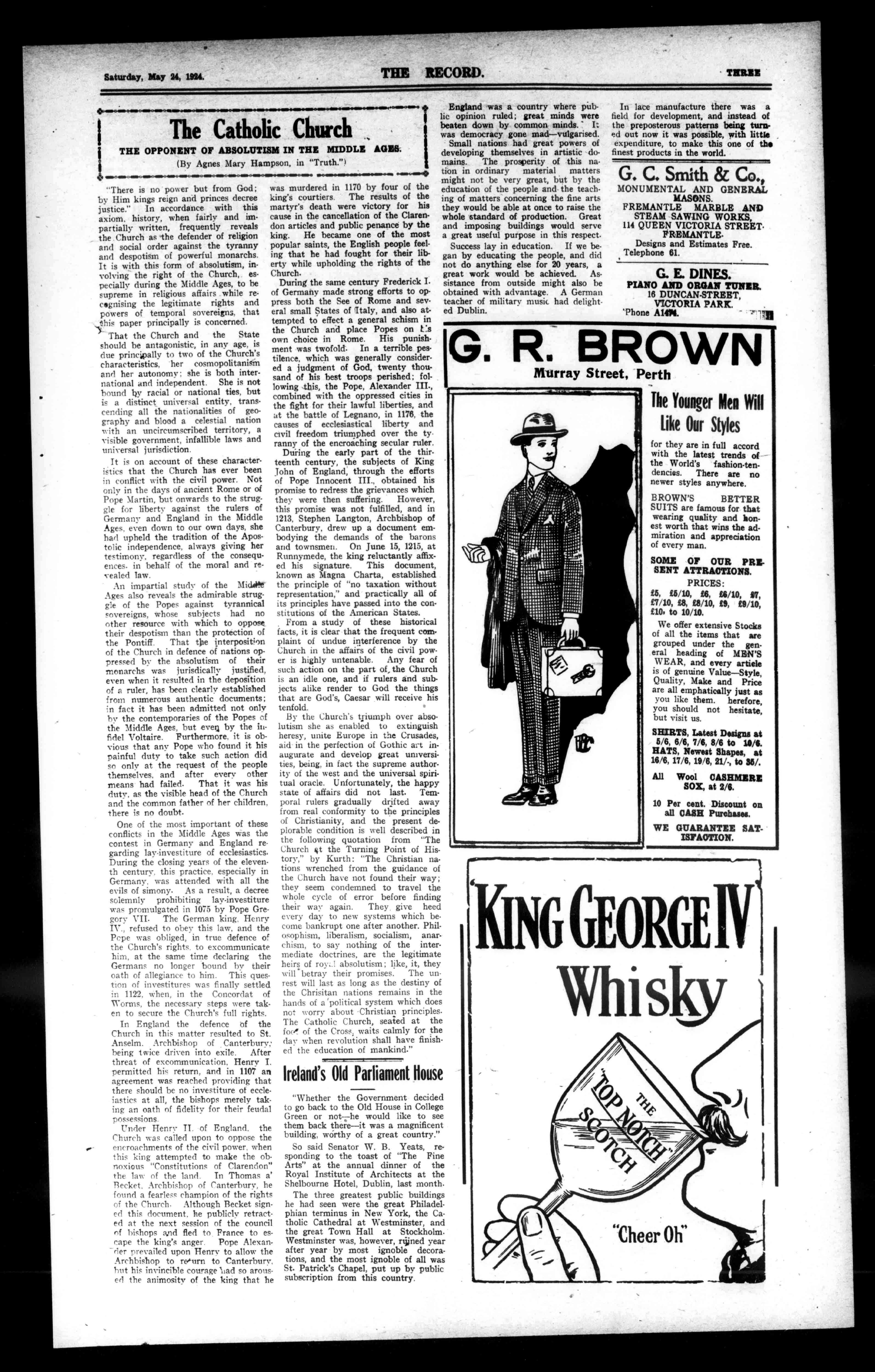 Donationsofanyamount,however small,areearnestlysolicited. NewMembersareUrgentlyrequired. YOUNGIRELANDSOCIETYOF WESTERNAUSTRALIA. UnderthePatronageofHisGracethe Archbishop. Objects:'fhestudyoftheLanguage Music,History.Literature,andDane:ngofIreland,andtherevivalsofthe idealsofanIrish-Ireland.