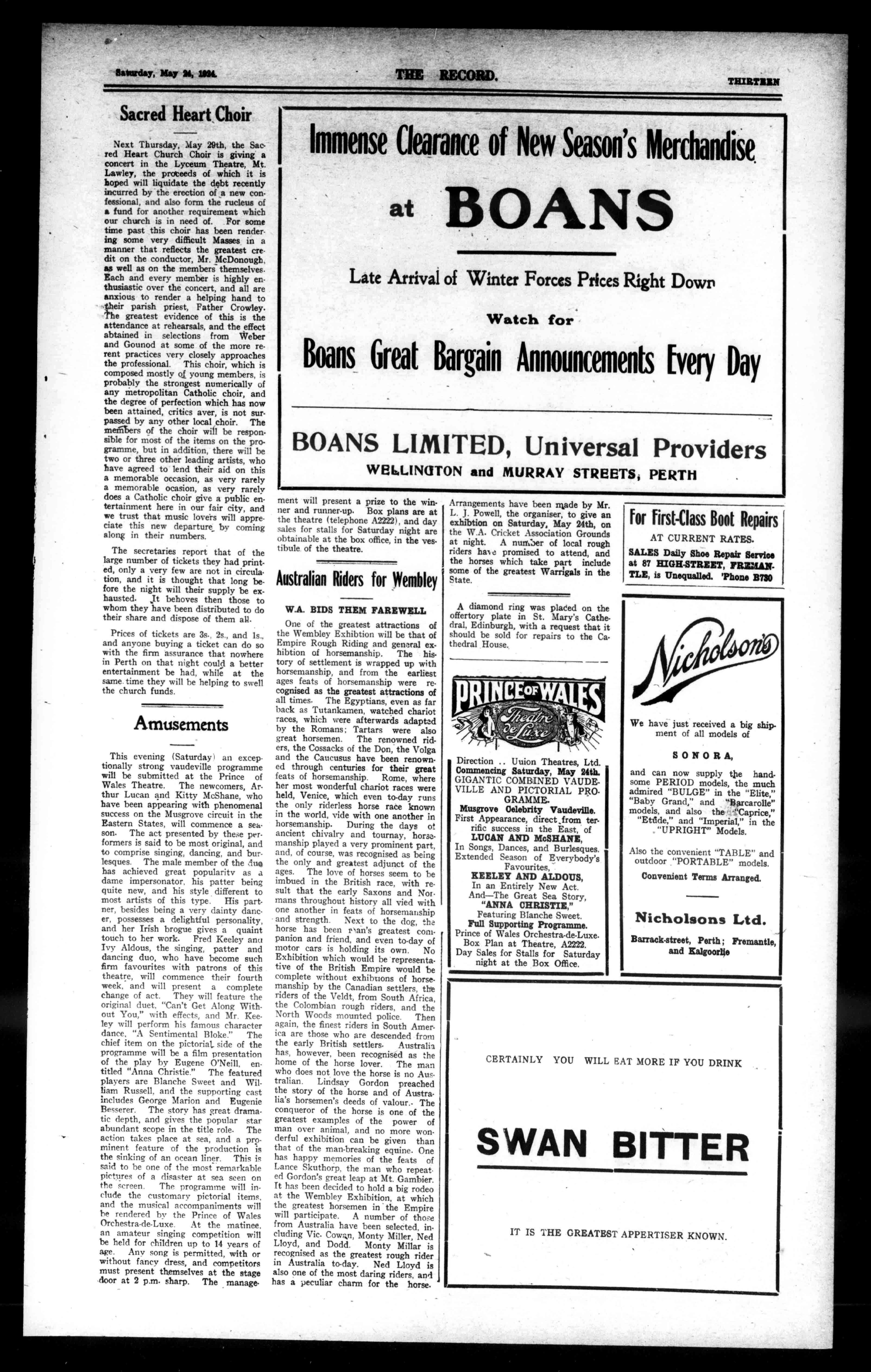GLANVXLLE'SLEMON HEADACHEPOWDERt, TheGREATAUSTRALIAN Remedy. ForInstantRelief andSpeedyCureof allHeadaches,Neuralgia,Toothache, andInfluenza,Rheumatism,Sciatica, Lumbago,etc. Price1/9perpacket, or3d.each. SoldbyallChemistsandPatent MedicineVendors. H.C.GLANVILLE,M.P.S. MARKET-STREET,FREMANTLE. "RICH"SIGNCO. WELLS,RICH,andTASSIILL Advertisingand