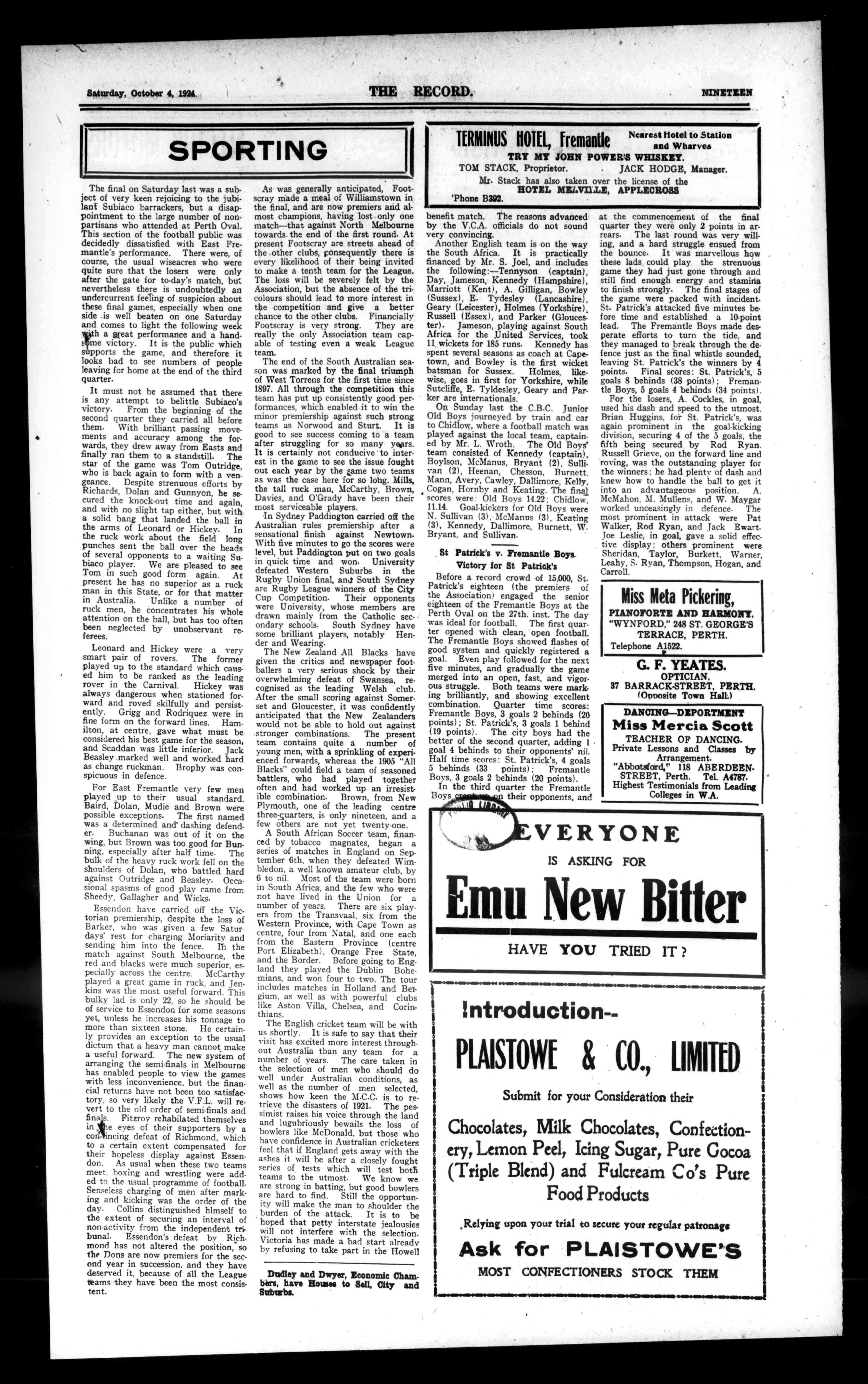 NationalHotelFremantle RenovatedThroughout.N.W.andGoldfieldsVisitorsSpeciallyCateredfor. UnderOwner'sPersonalSupervision.