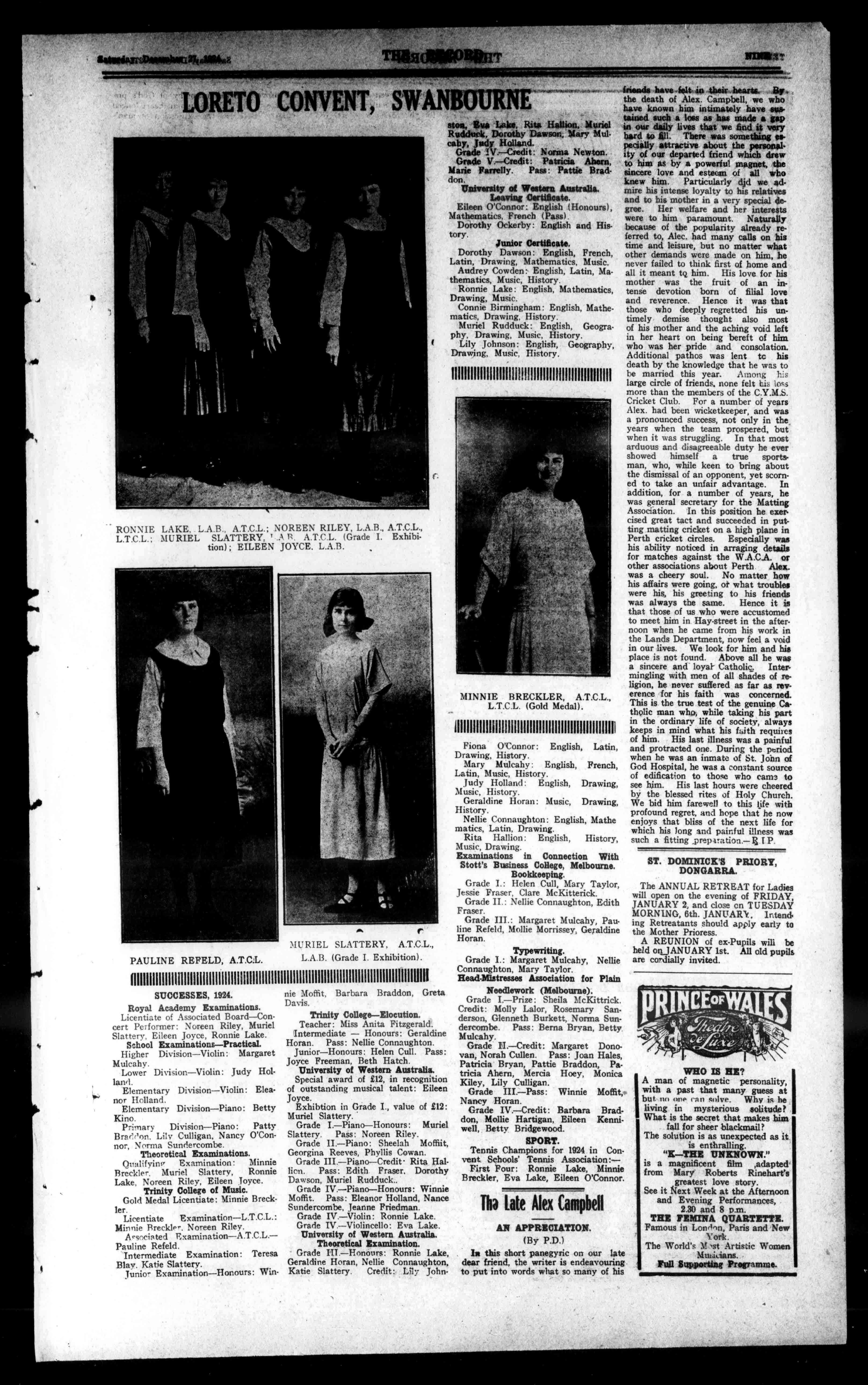 InJunetheSilverJubileeofthe arrivalofthyDominicanNunsin WesternAustraliawascelebratedby thestudents,who,withtheassistance oftheex-pupilsofthisandourvarious schoolsontheMurchisonandLeonora Goldfields,areerectinginthePriory groundsatDongarraasouvenirofthe greateventintheshapeofastatue ofSt.Dominick.Thestatueisbeing carvedoutofwhitemarble,andshould arriveinafewmonths.Onthe1st. January,1925,thefirstre-unionofexpupilsistobeheldattheCollege,Dongarra,whenwehopetoseemanyfaces ofthosewhohavefilledtheschoolroomsinyearsgoneby.