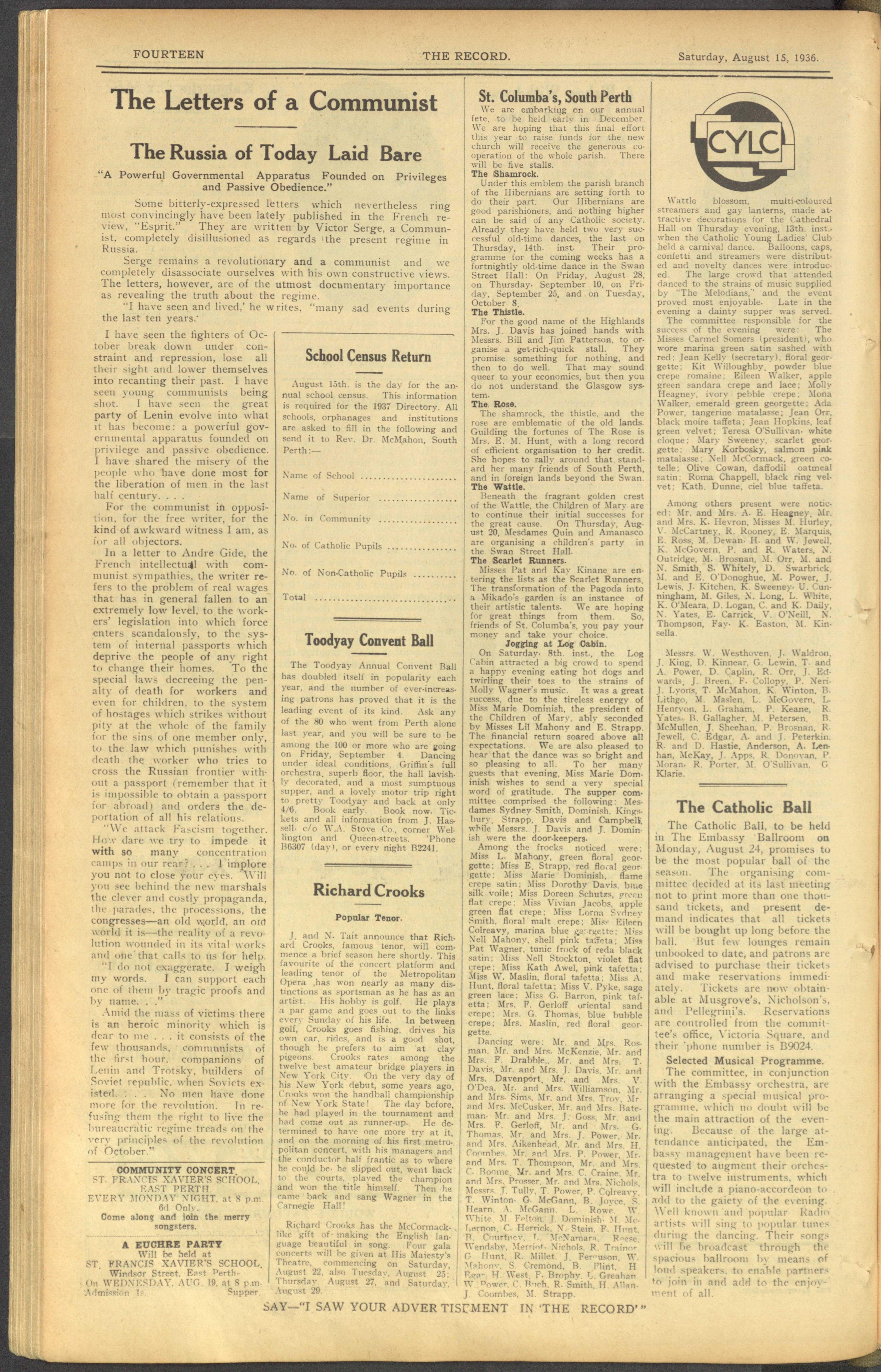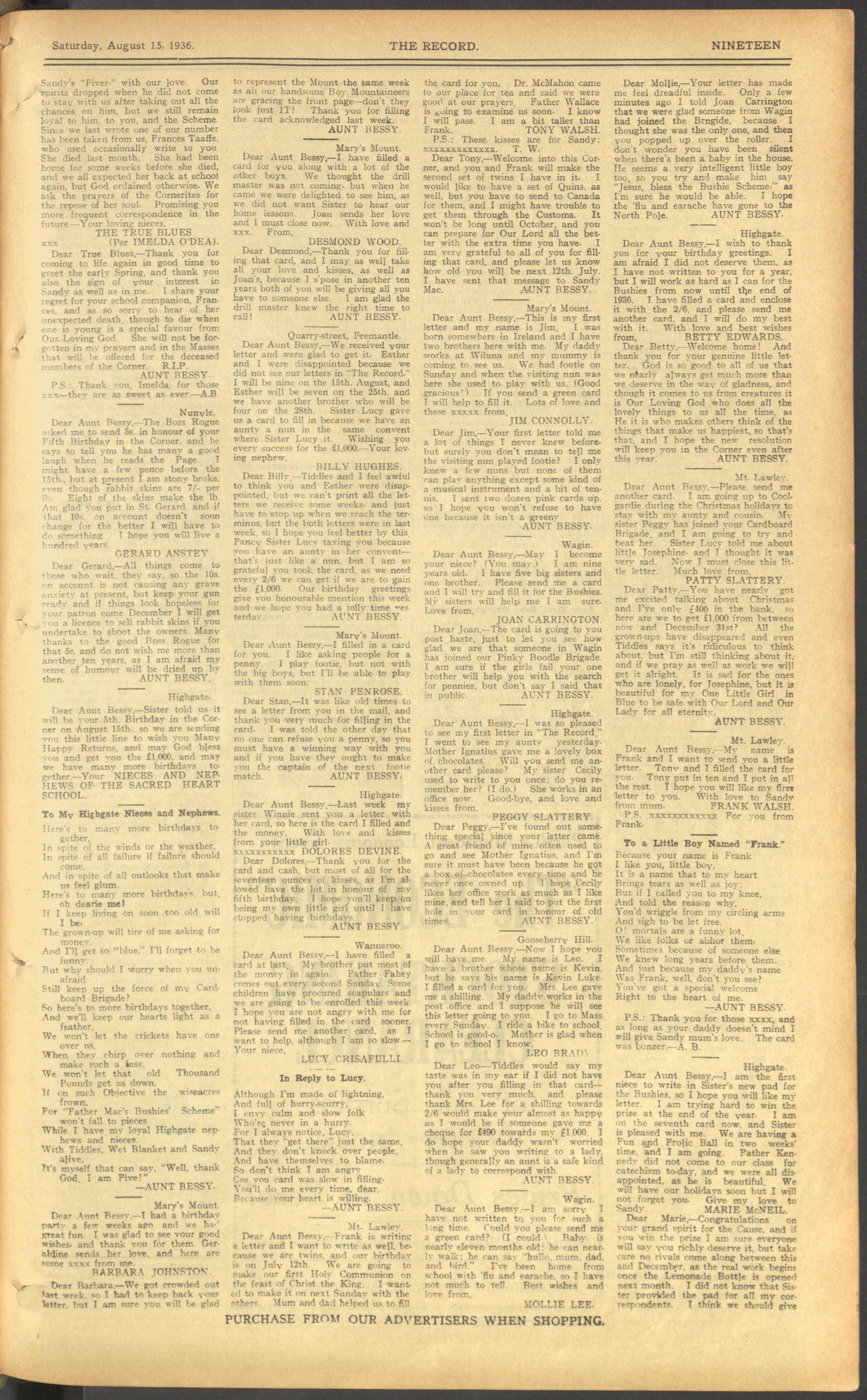 The Record Newspaper 15 August 1936