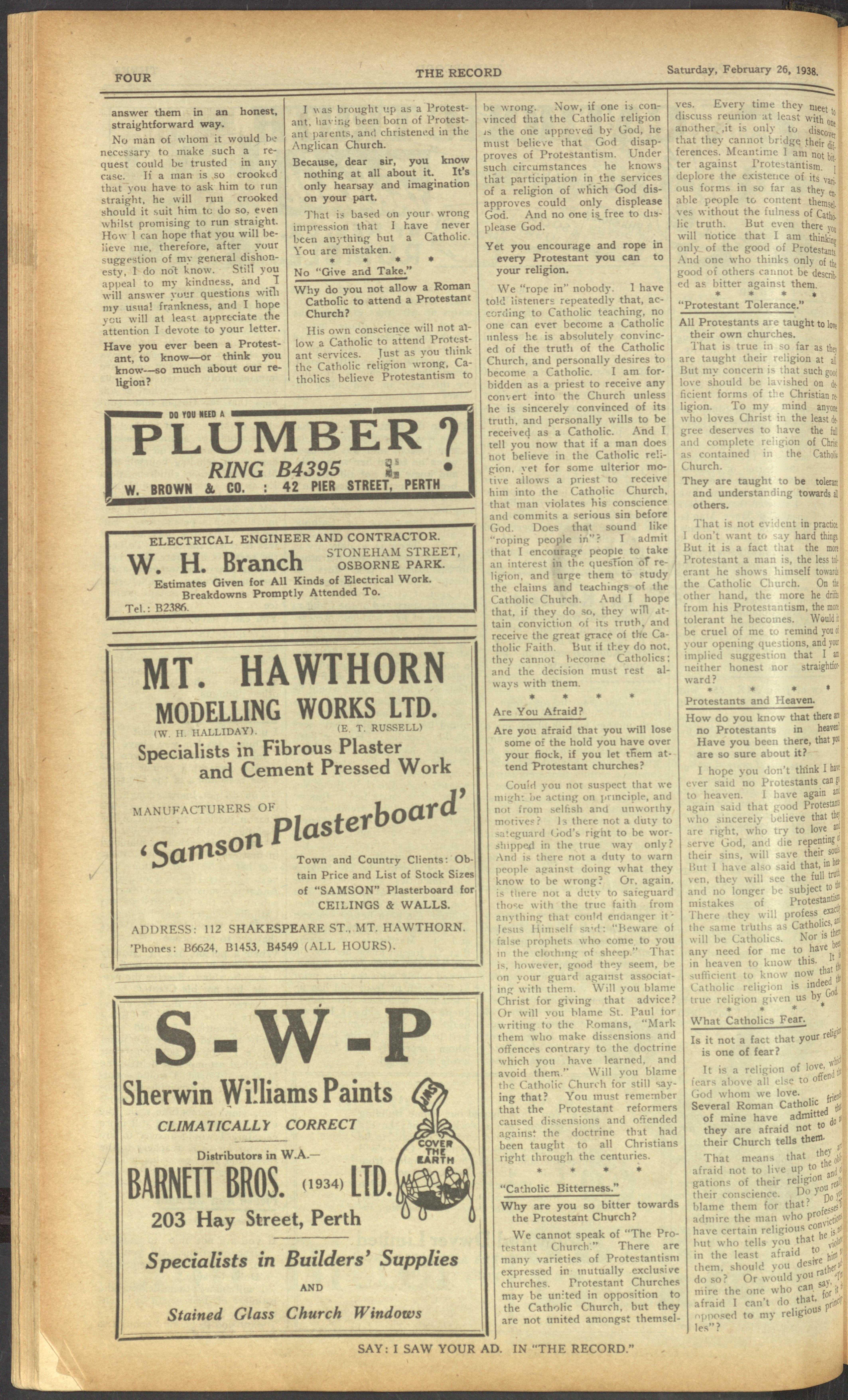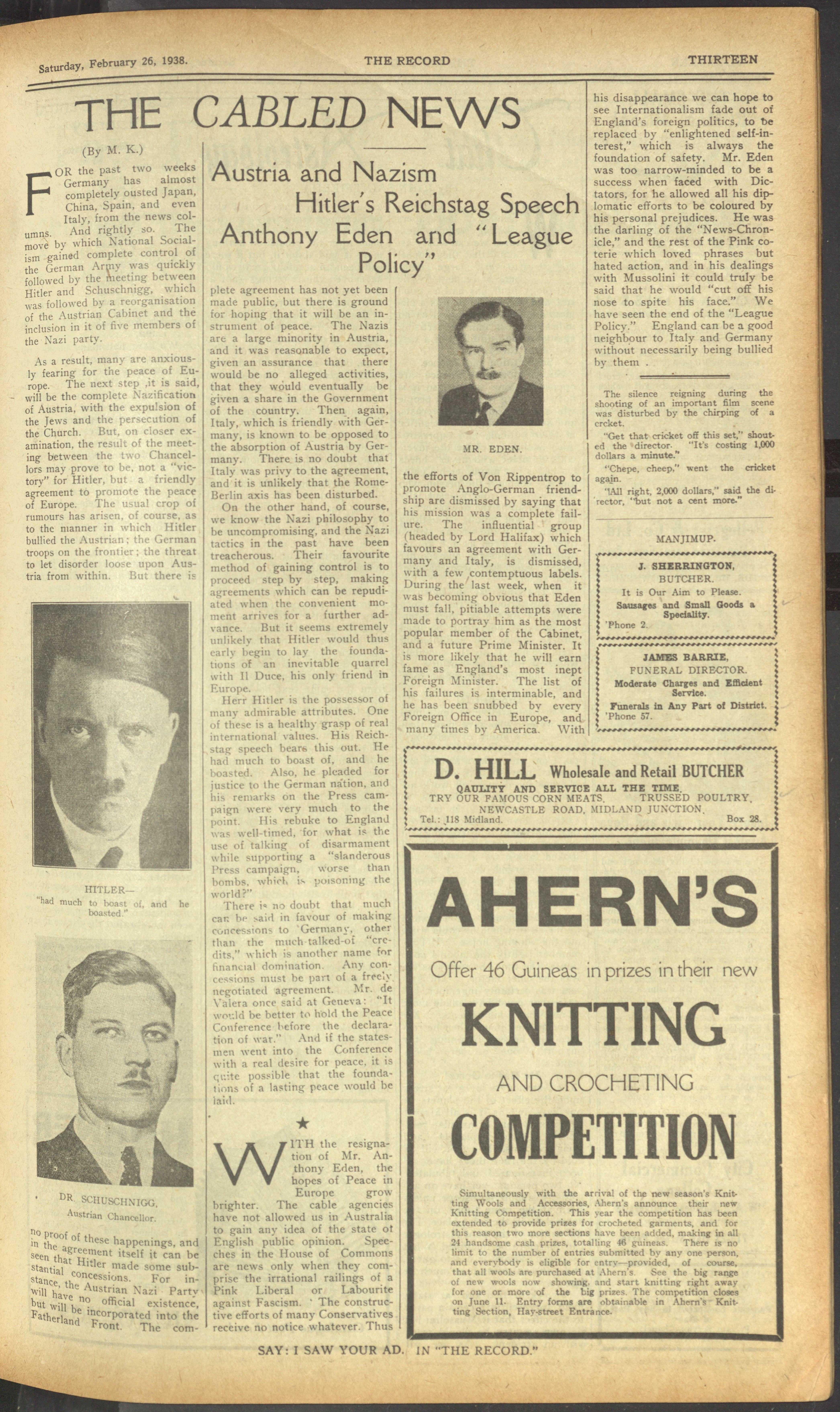 The Record Newspaper 26 February 1938
