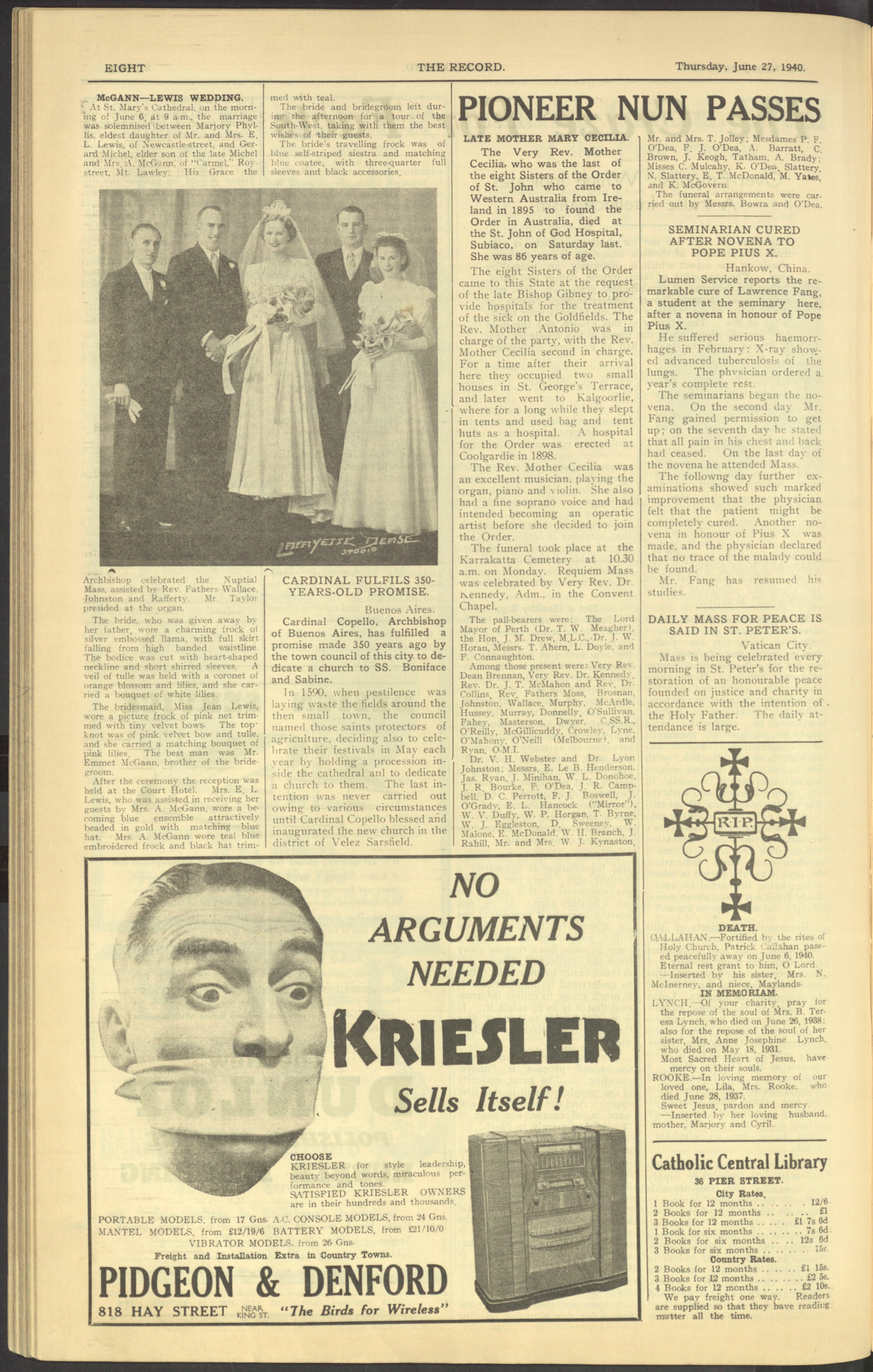 Official Organ of the Archdiocese of Perth ESTABLISHED 1874