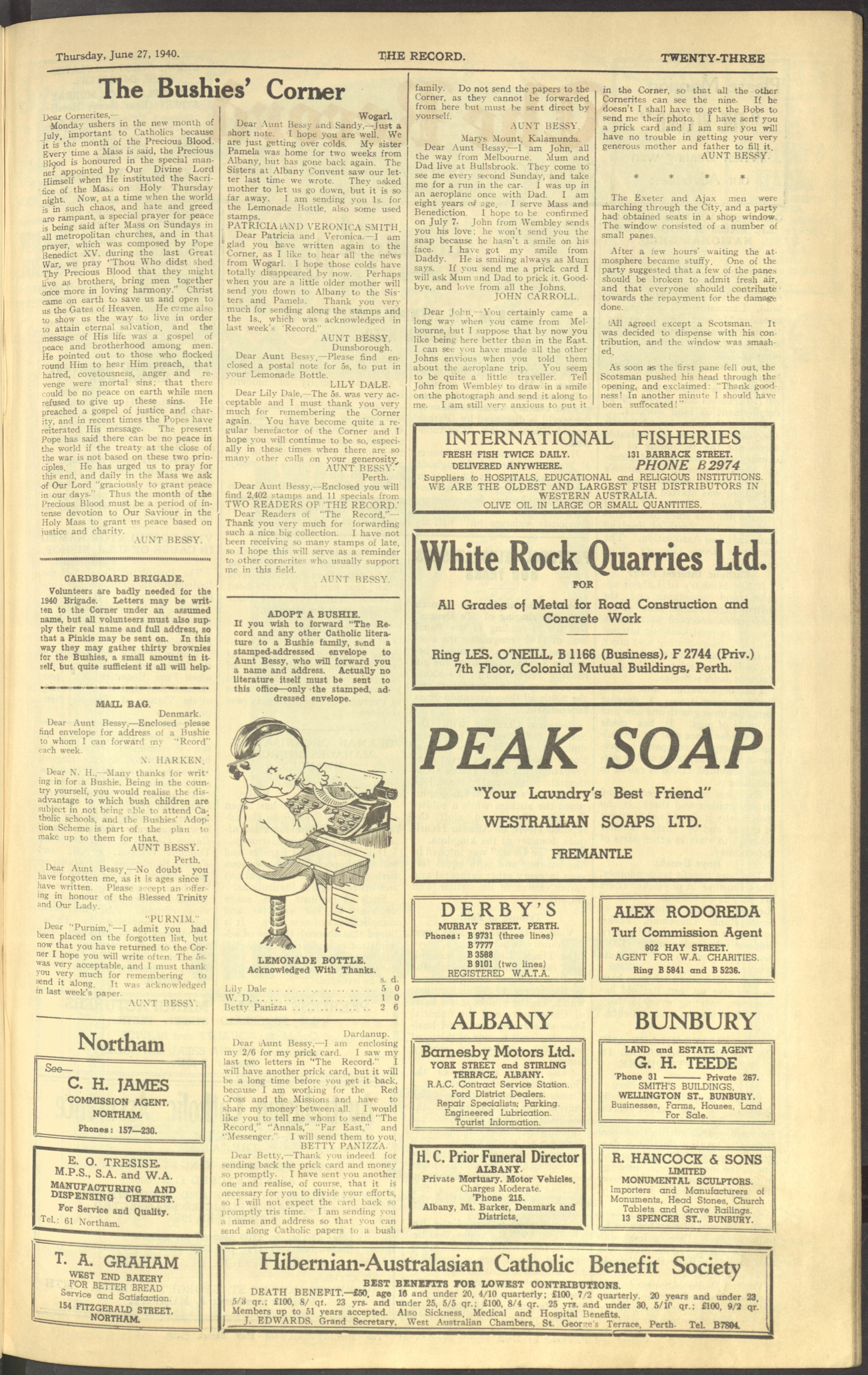 If you wish to forward "The Re cord and any other Catholic literature to a Bushie family, sund a stamped-addressed envelope to Aunt Bessy, who will forward you a name and address Actually no literature itself must be sent to this officeonly the stamped, addressed envelope