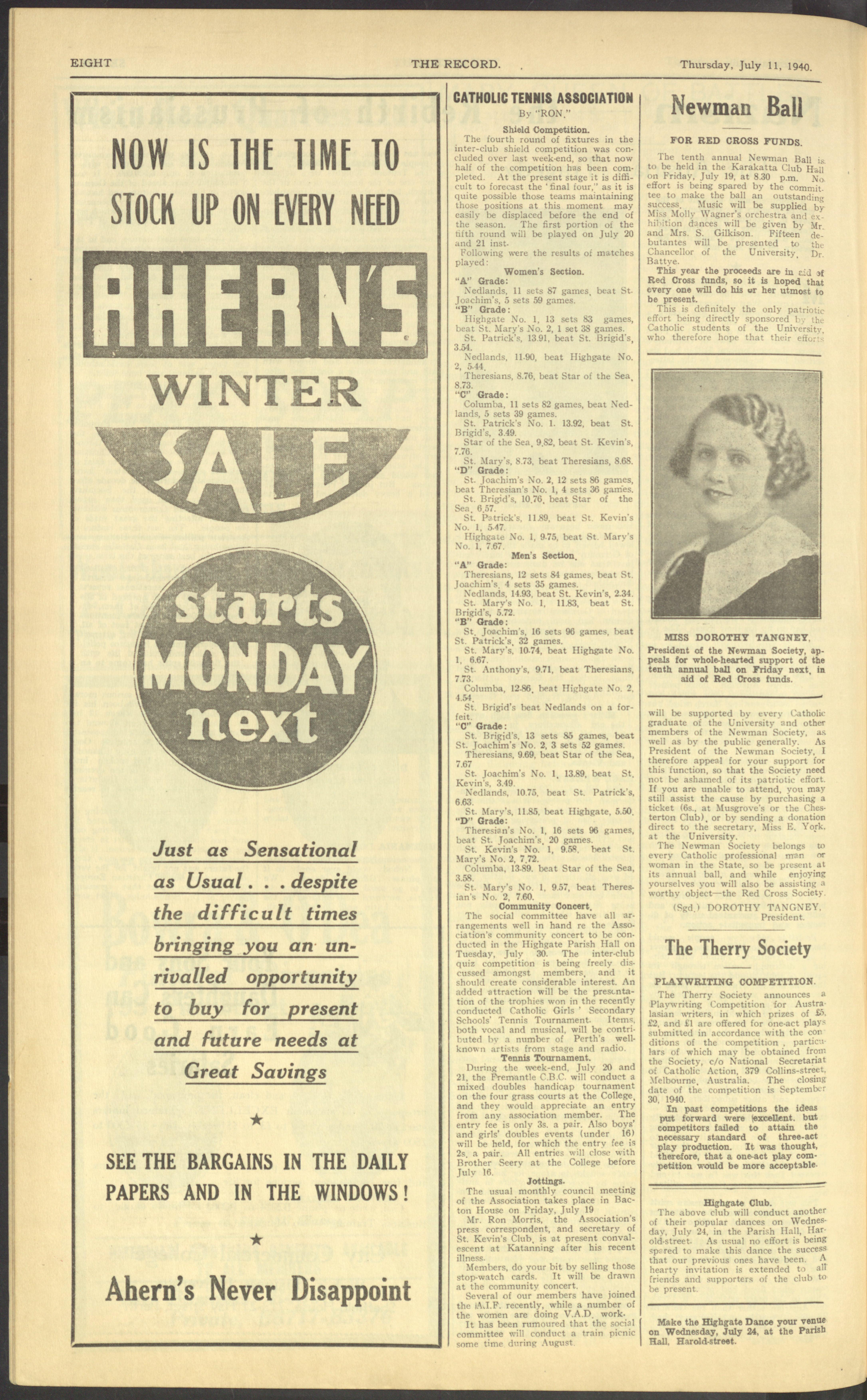 All enquiries concerning Advertisements should be addressed to the ADVERTISING MANAGER, THE RECORD" 450 HAY STREET PERTH, West Australia.