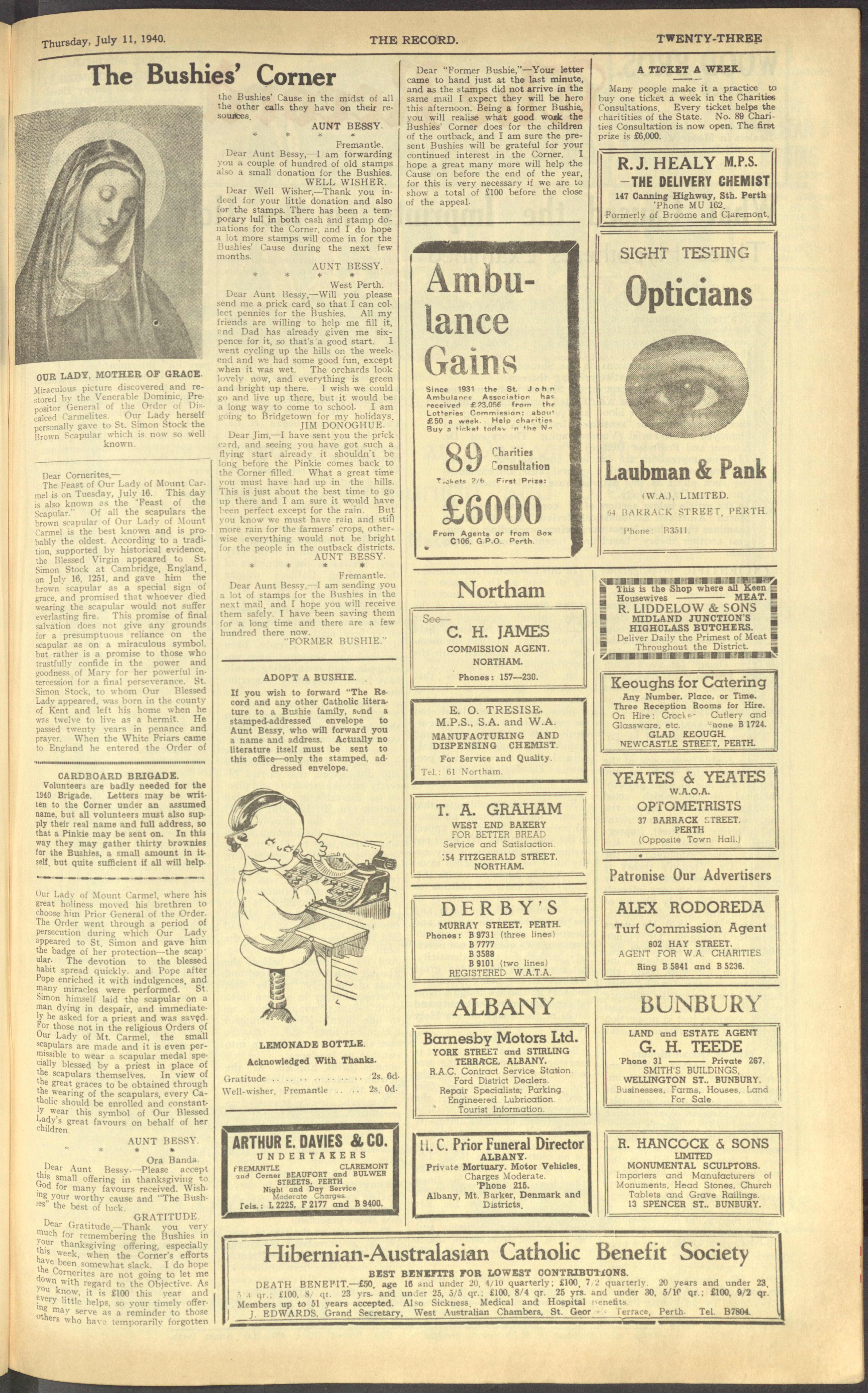 If you wish to forward The Record and any other Catholic literature to a Bushie family sund a stamped-addressed envelope to Aunt Bessy, who will forward you a name and address Actually no literature itself must be sent to this officeonly the stamped addressed envelope