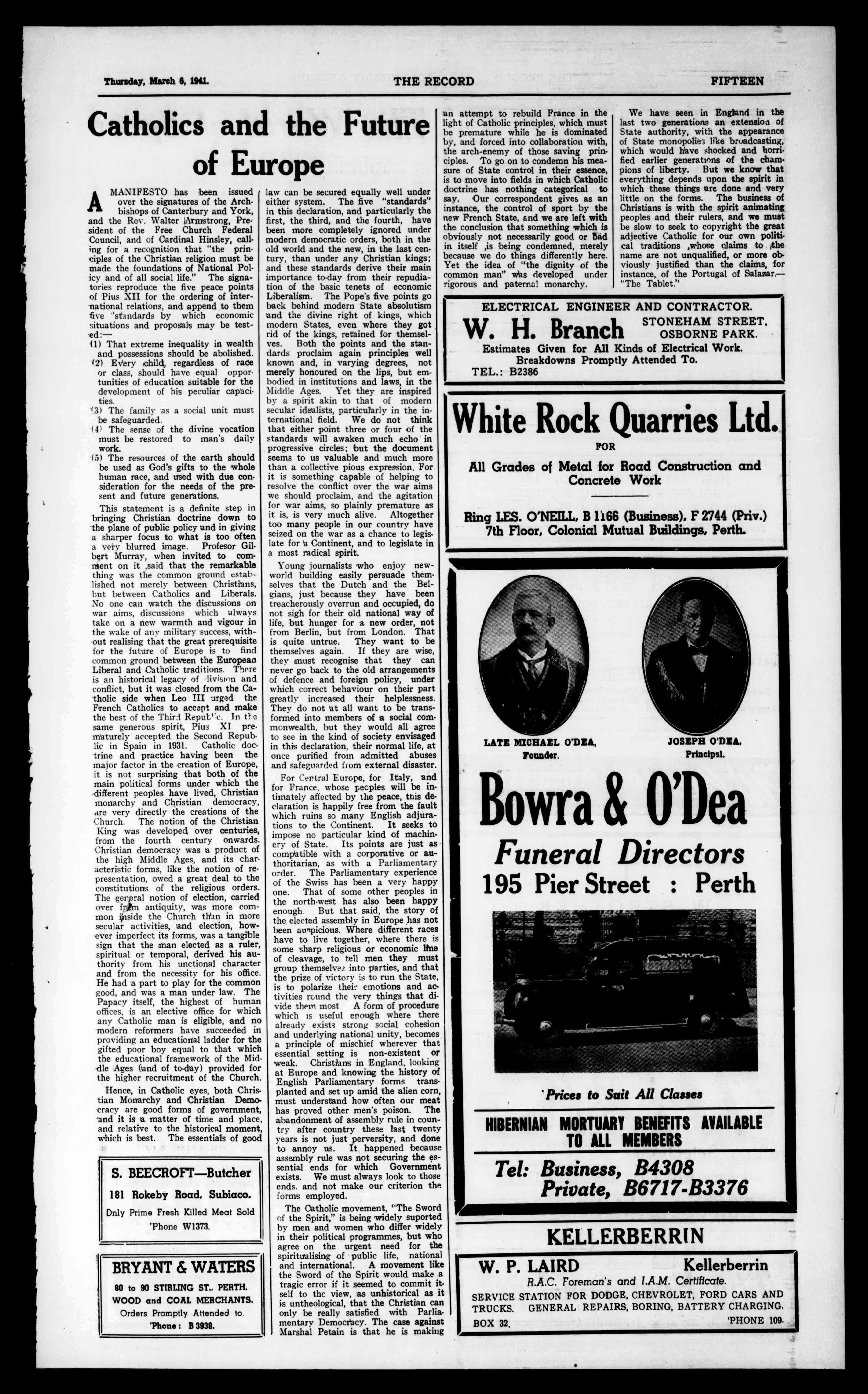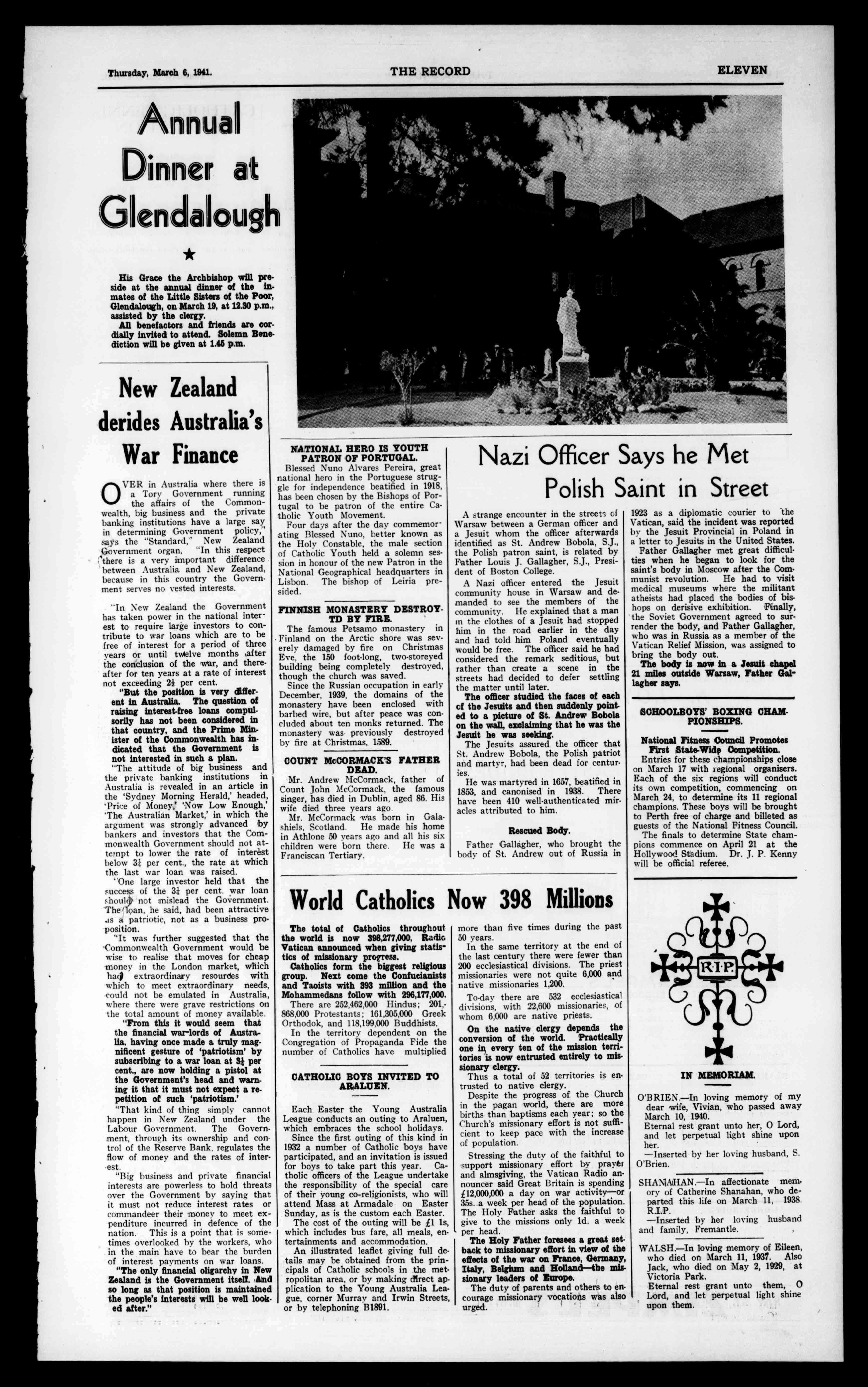 Thefollowingnewsconcerningthe plightofCatholicsinGerman-controlledPolandhasbeensuppliedbythe DepartmentofInformation, Melbourne:-