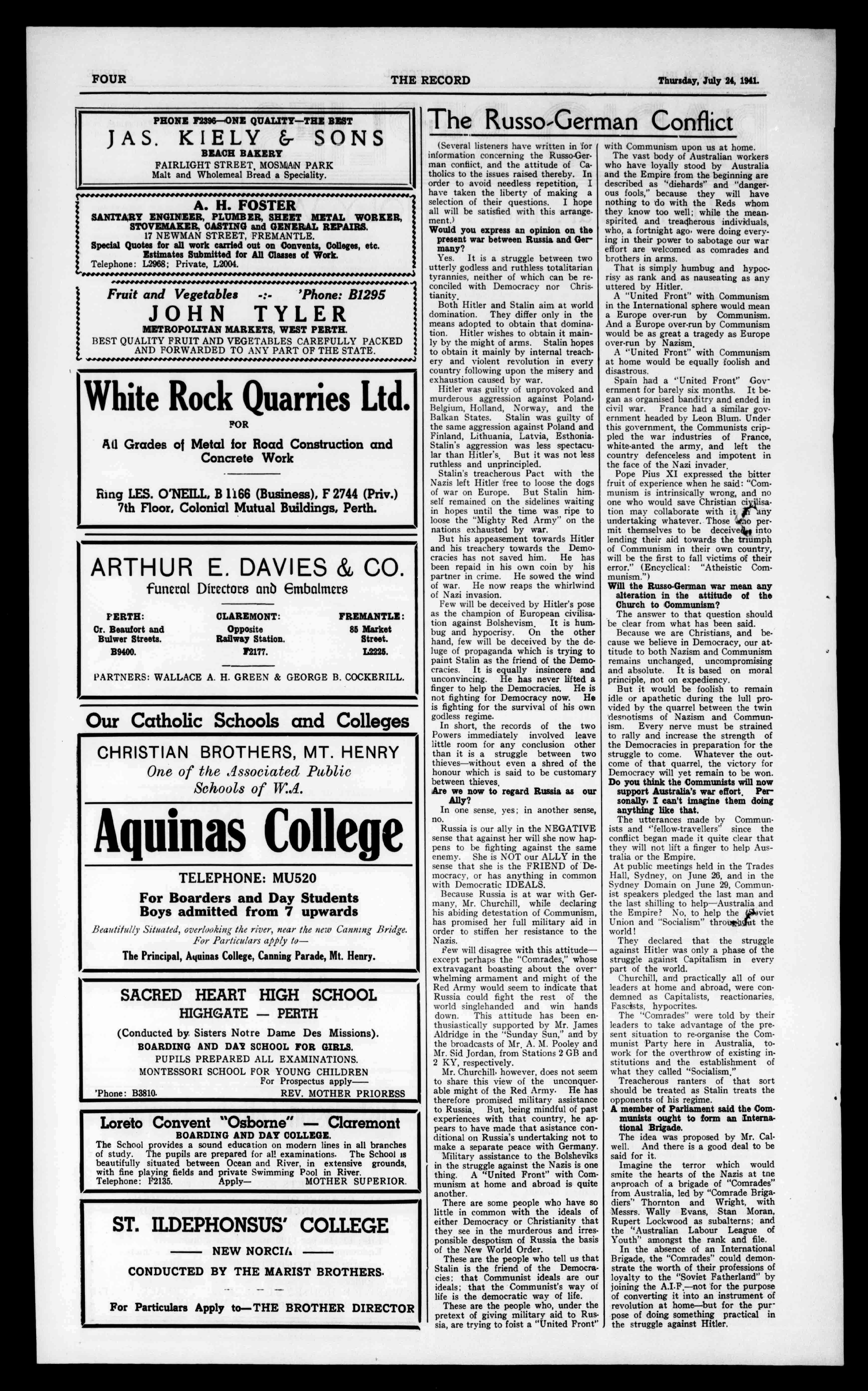 Allcommunicationsaretobe senttotheEditor,"TheRecord,"BoxA35,G.PD.,Perth.