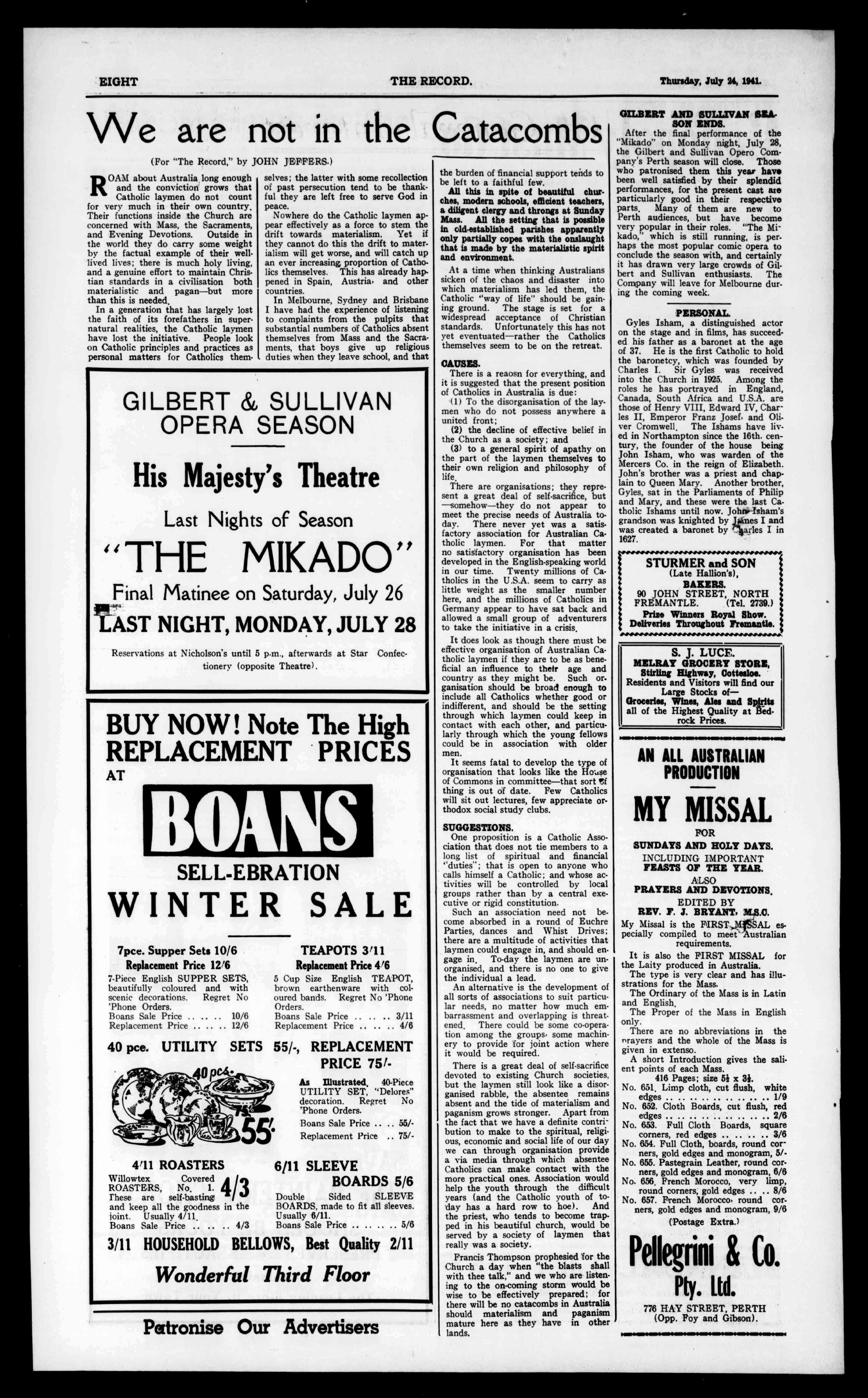 Soto-daywehavetheamazing pos.tionthatCatholicco-operationinnationalreconstructionis beingsought.Andweshould beproudtoseizetheopportunity, fornotonlywillourintelligent effortsredoundtothecreditof theFaithbutmaymakeallthe differenceinthefuturenational developmentofAustralia.On theotherhand,ifwefailtomake acontributiontothisresearch, wewillhavenoonebutourselves toblameifthepost-warreconstructionisconductedalongantiCatholic,orevenanti-Christian, lines.