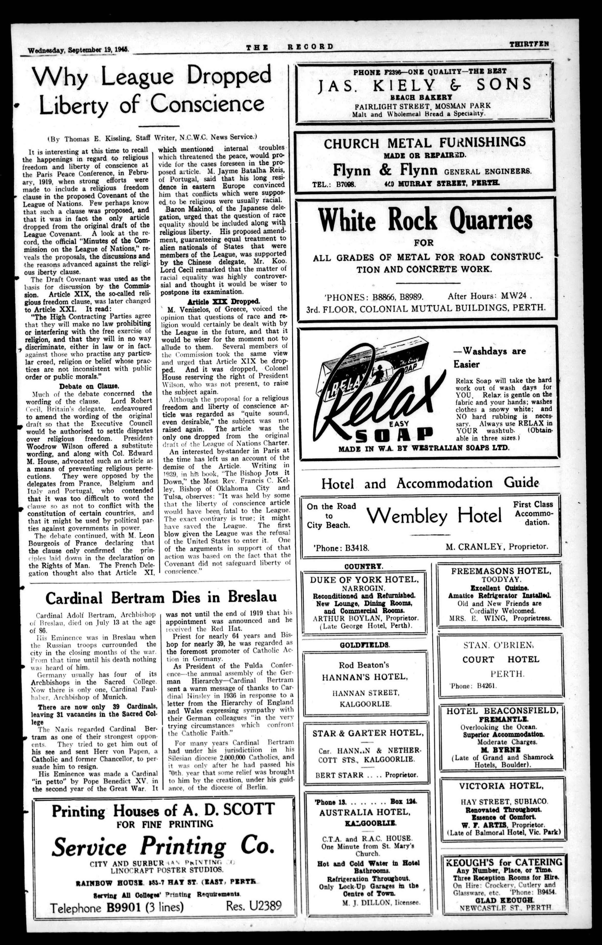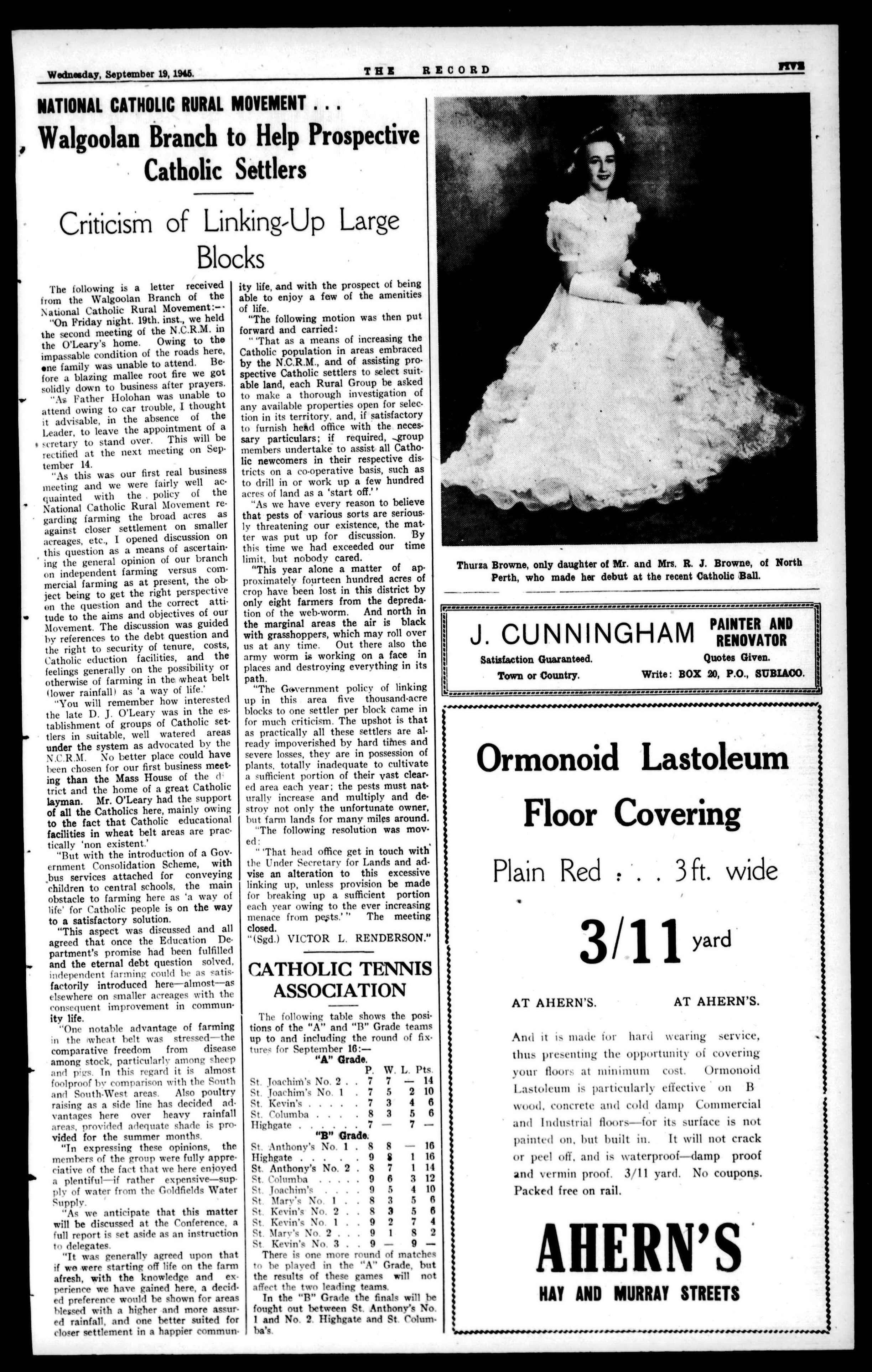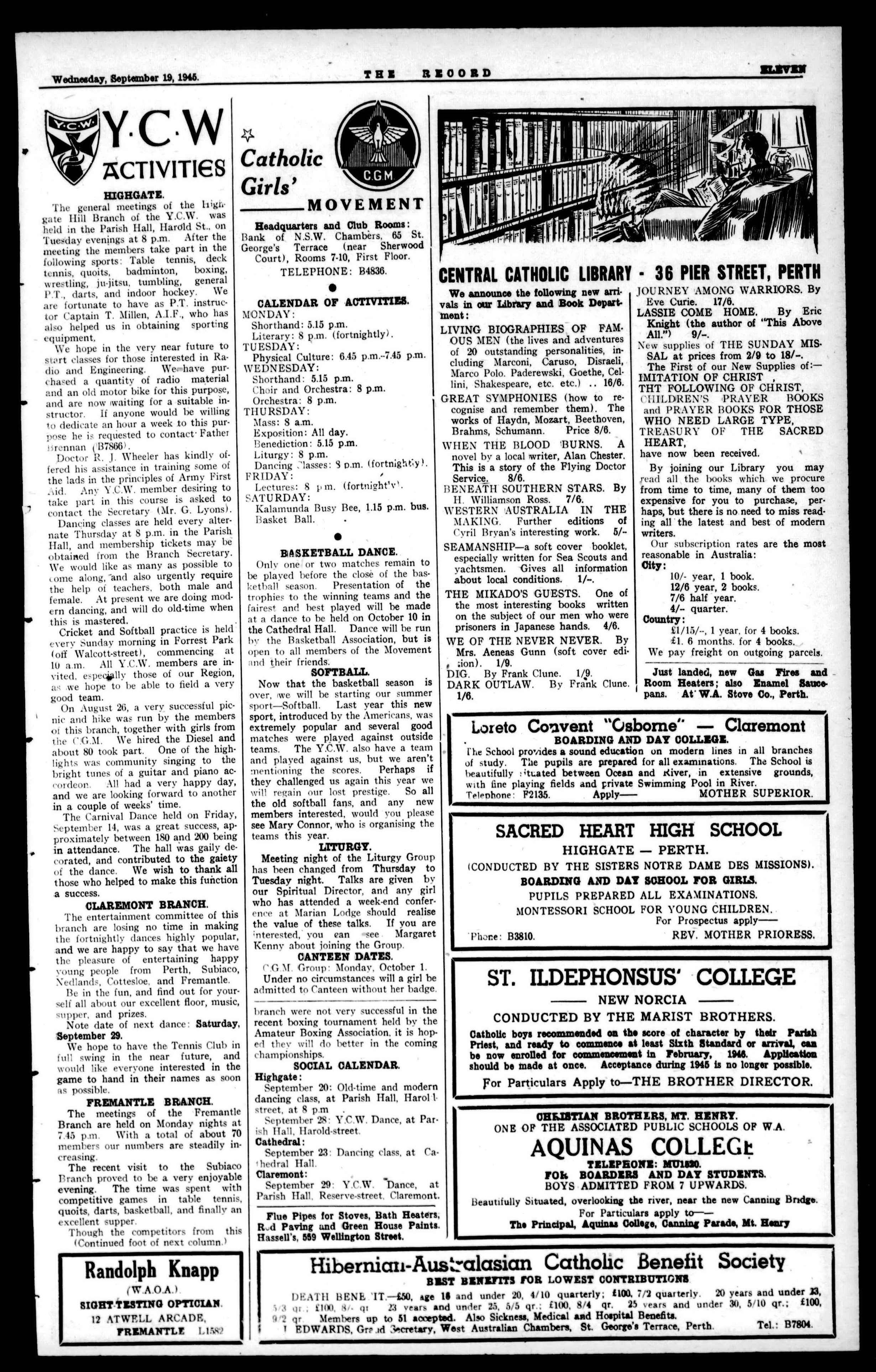 CONSULT ... with our ADVER11SERS for all your REQUIREMENTS Cbe Record OfficialOrganof theArchdioceseofPerth ESTABLISHED 1874 CHINA, GLASS and PLATED WARE IMPORTERS. OTLEYPLACE, Off MURRAY STREET (Rear Savoy Hotel) Convents, Colleges, Institutions and Schools Specially Catered toi Price Lists and Catalogue on Application. Phone B9951 Kelly & Rodoreda Late of IOHN DYNON ACO.